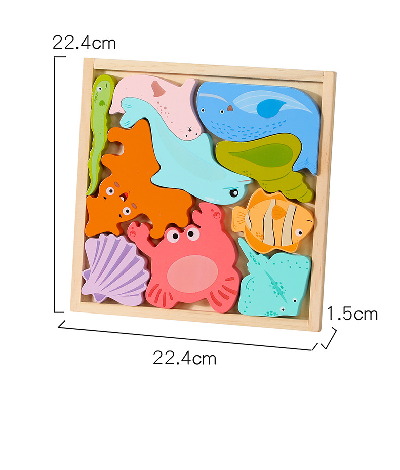 어린이 만화 동물 마린 3 차원 손 보드 퍼즐 아기 조기 교육 건물 블록 나무 장난감