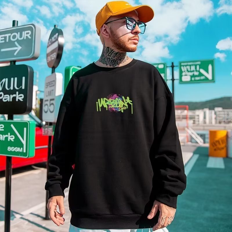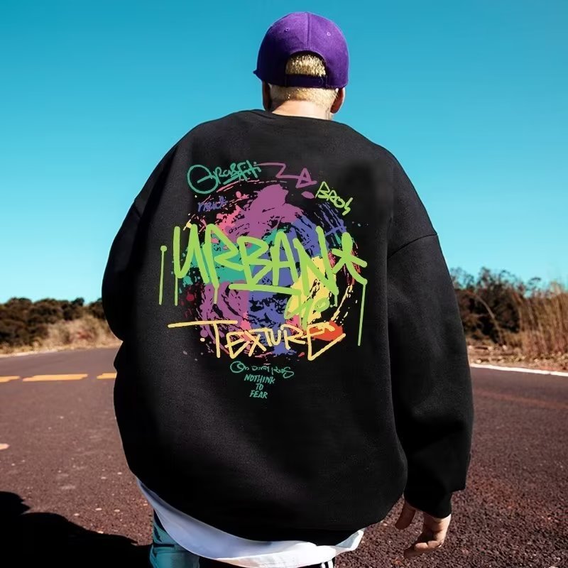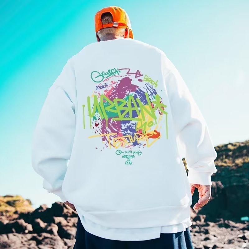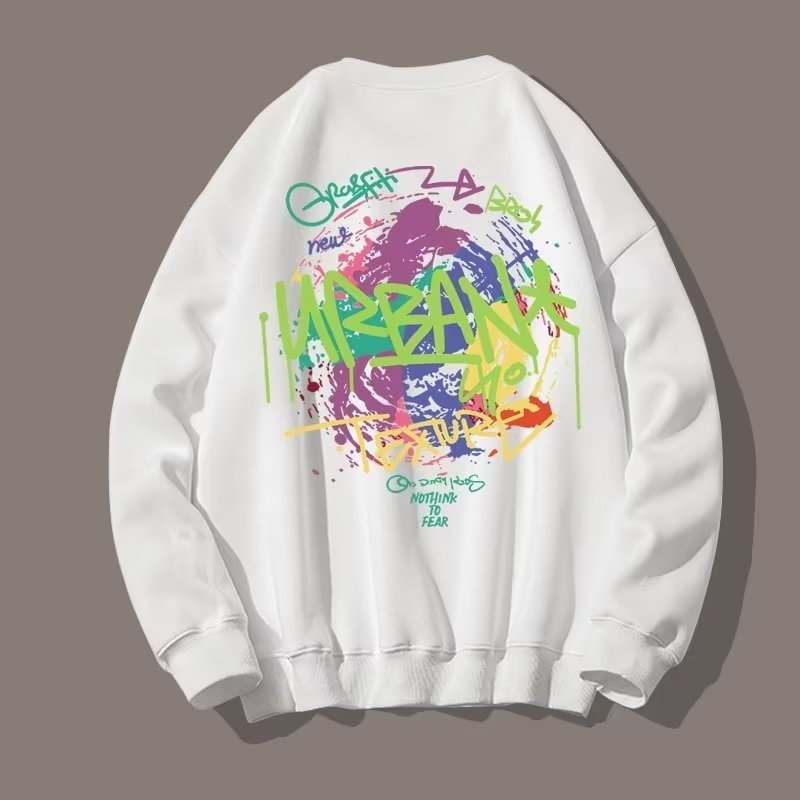 유럽 역 캐주얼 헤비 올 매치 남성 및 여성 커플 같은 스타일 스포츠 풀오버 2023 인쇄 봄과 가을 얇은 스웨터스토어 가기