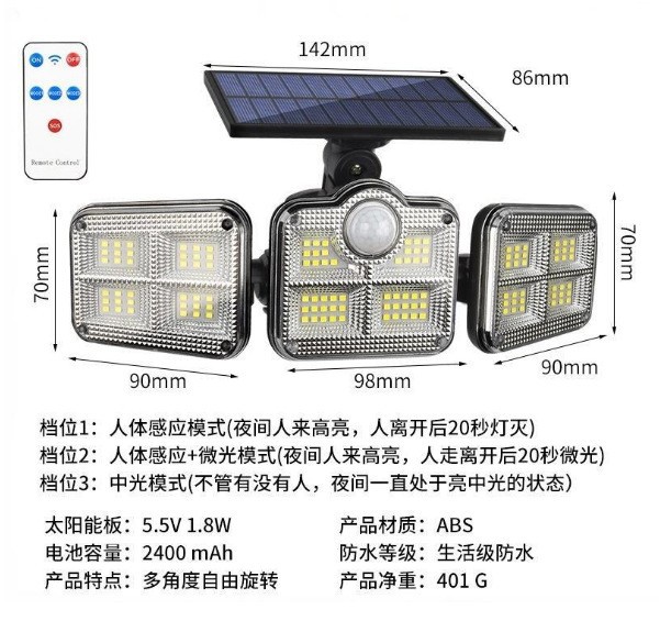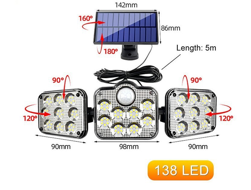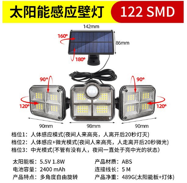 태양 가로등 인체 유도 무료 회전 벽 조명 태양 가로등 야외 방수 벽 조명 작은 가로등스토어 가기