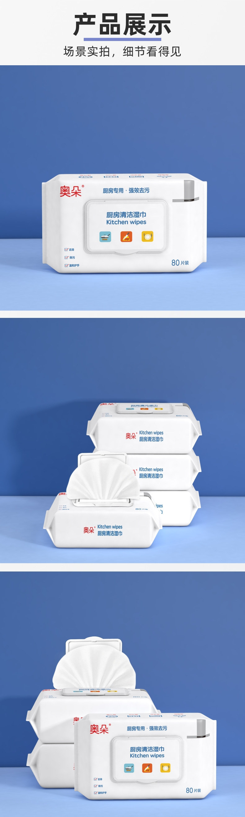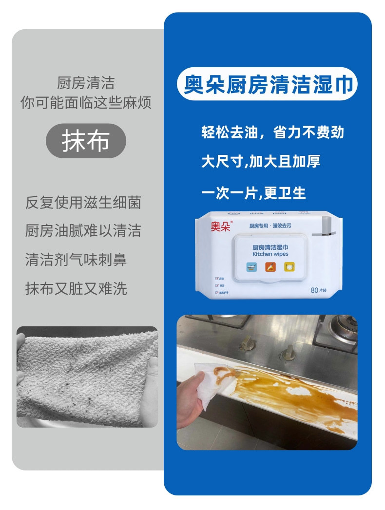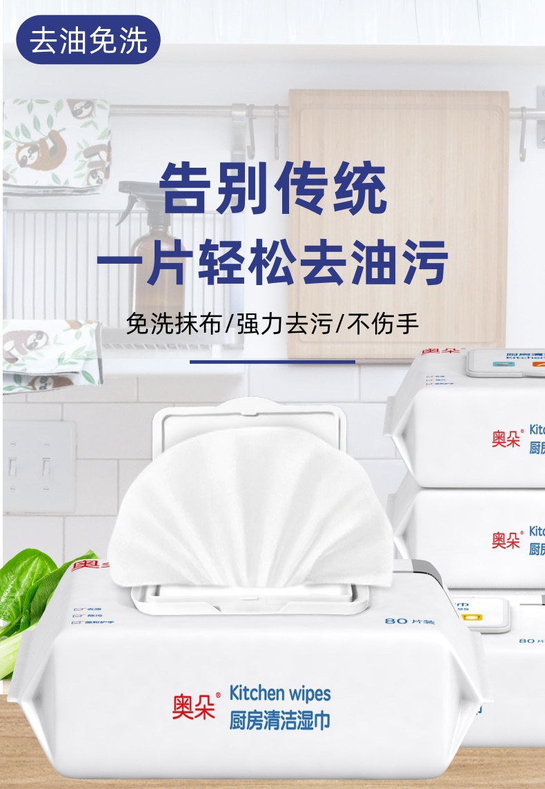 주방 물티슈 대형 포장 강한 오염 제거 오일 얼룩 젖은 물티슈 일회용 청소 범위 후드 스토브 주방 젖은 종이