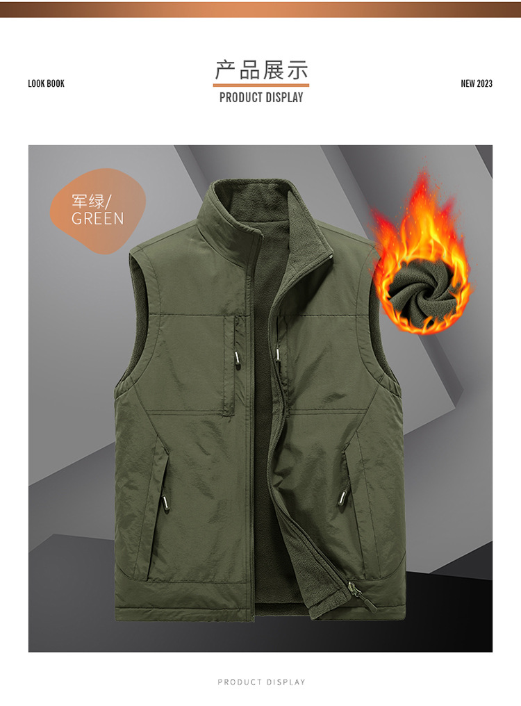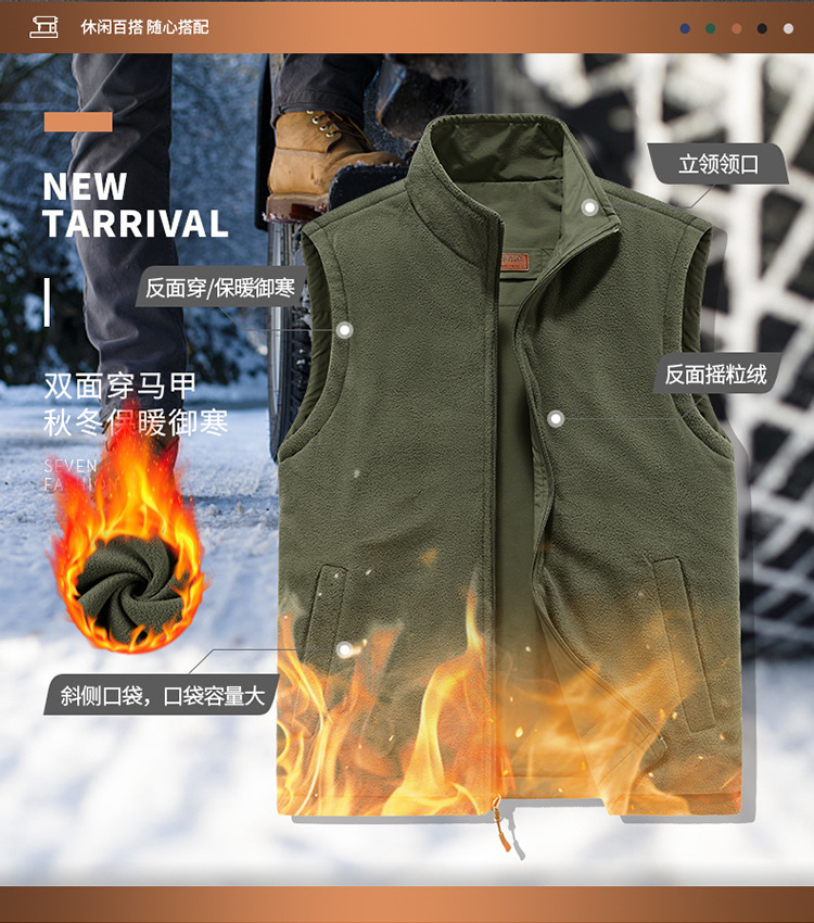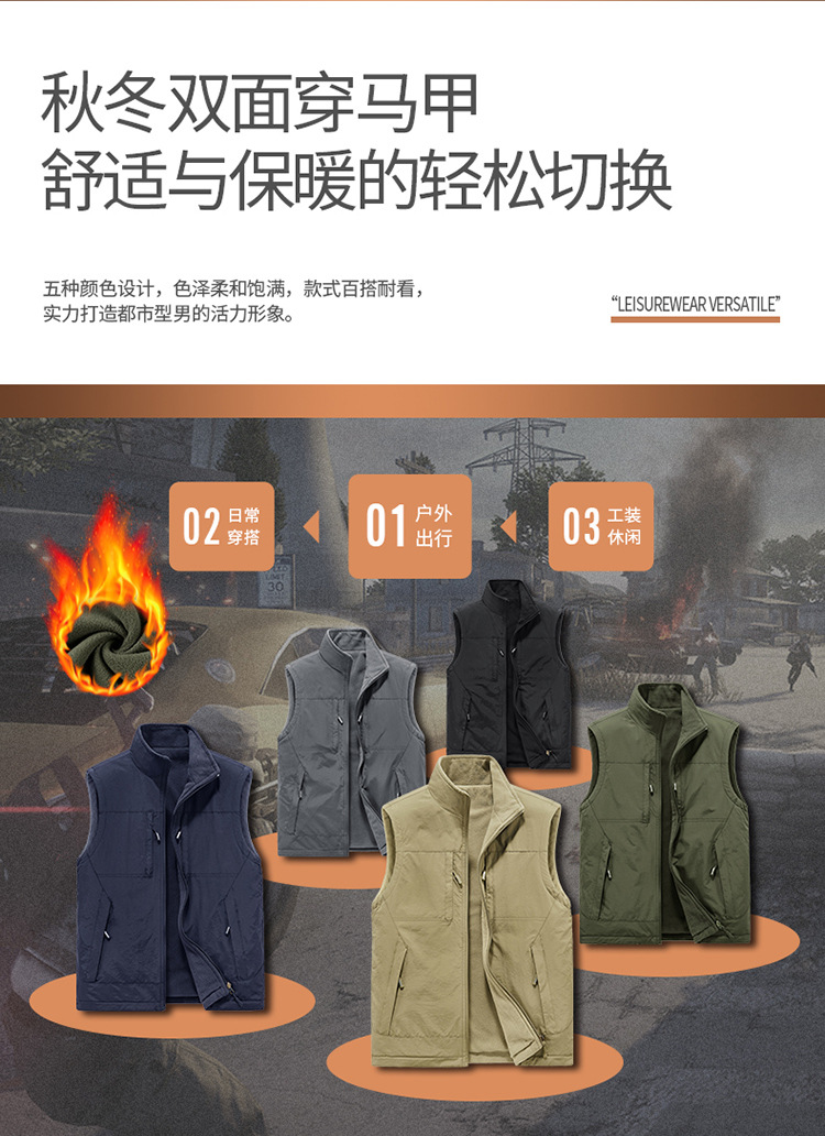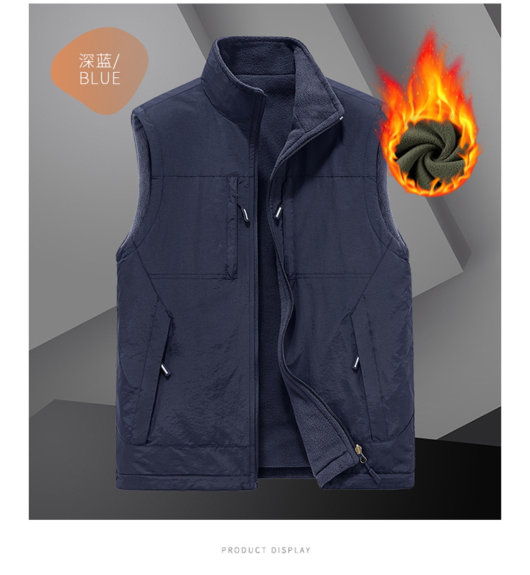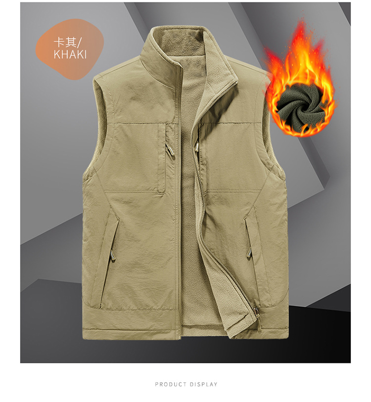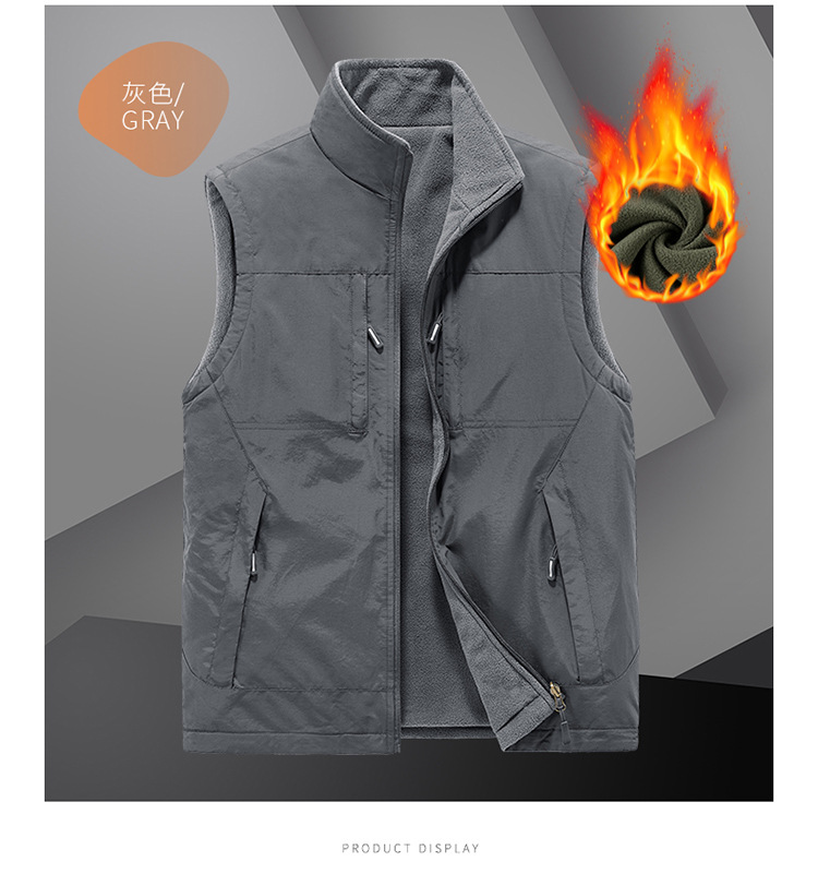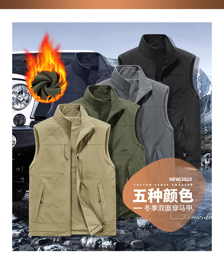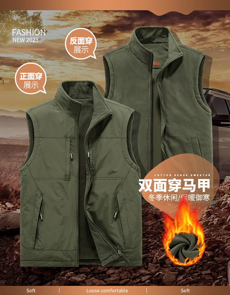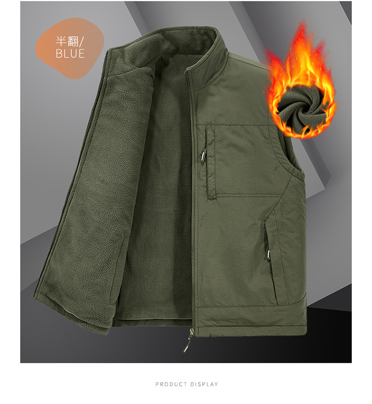 가을과 겨울 양면 양복 조끼 남자의 야외 스포츠 조끼 북극 양털 양복 조끼 기모 멀티 포켓 양복 조끼스토어 가기