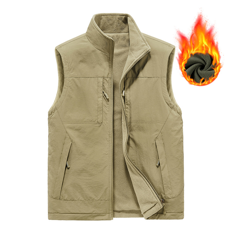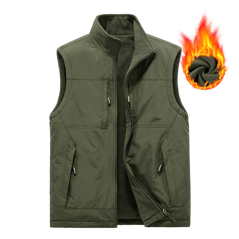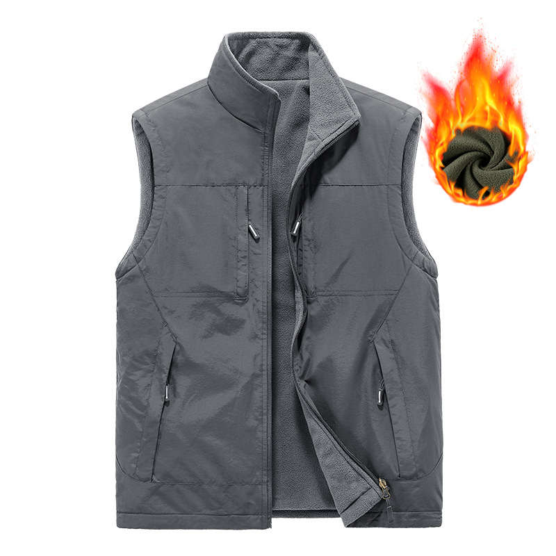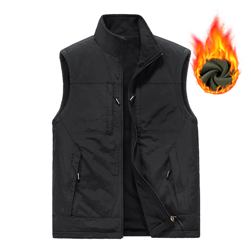 가을과 겨울 양면 양복 조끼 남자의 야외 스포츠 조끼 북극 양털 양복 조끼 기모 멀티 포켓 양복 조끼