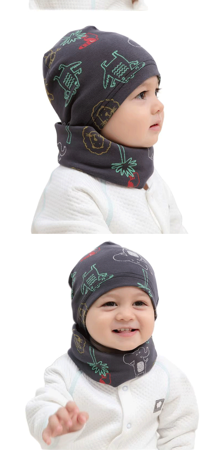 어린이 모자와 스카프 세트, 남아 여아용 목도리 세트, 가을 겨울 따뜻한 아기 풀오버 모자, 만화 캐릭터 따뜻한 모자스토어 가기