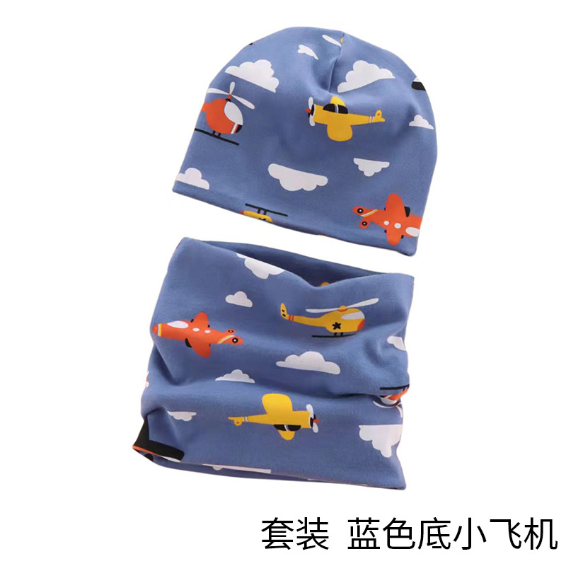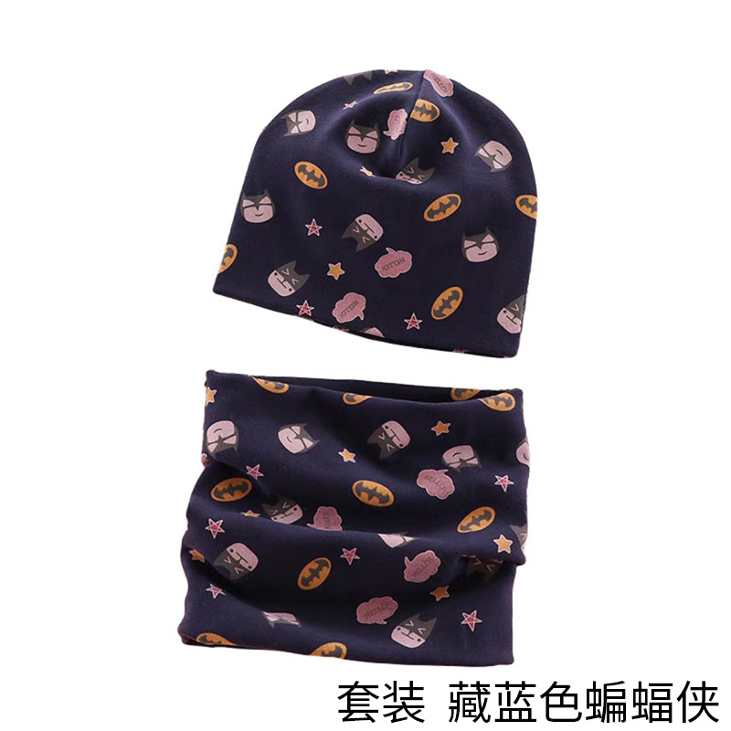 어린이 모자와 스카프 세트, 남아 여아용 목도리 세트, 가을 겨울 따뜻한 아기 풀오버 모자, 만화 캐릭터 따뜻한 모자
