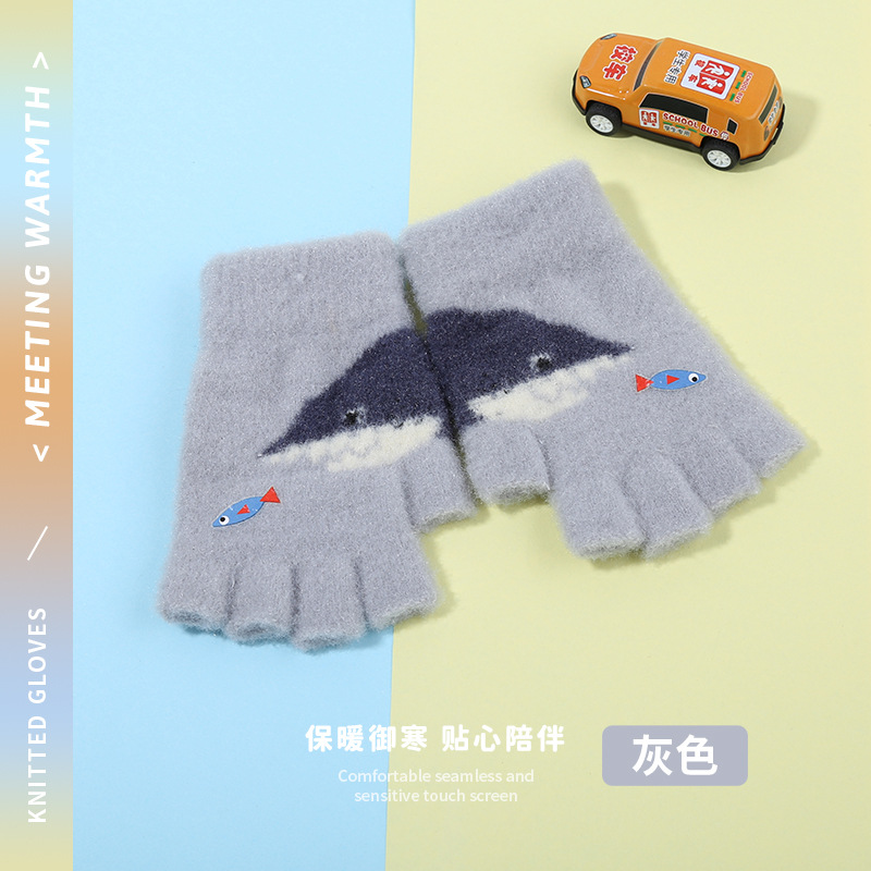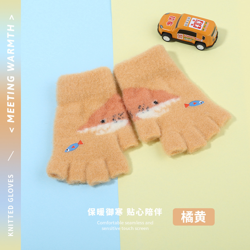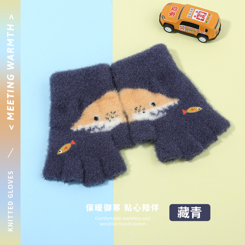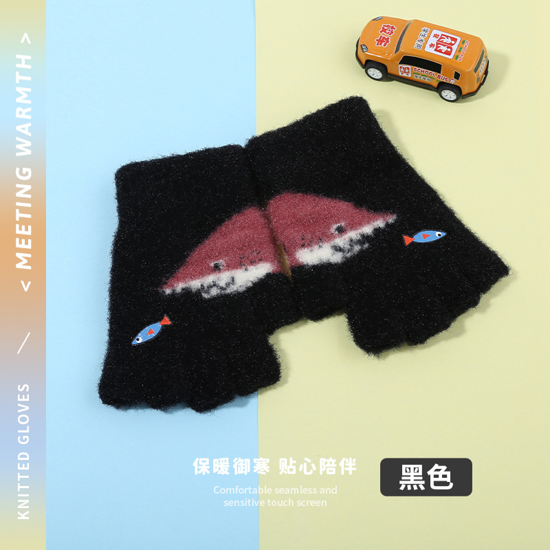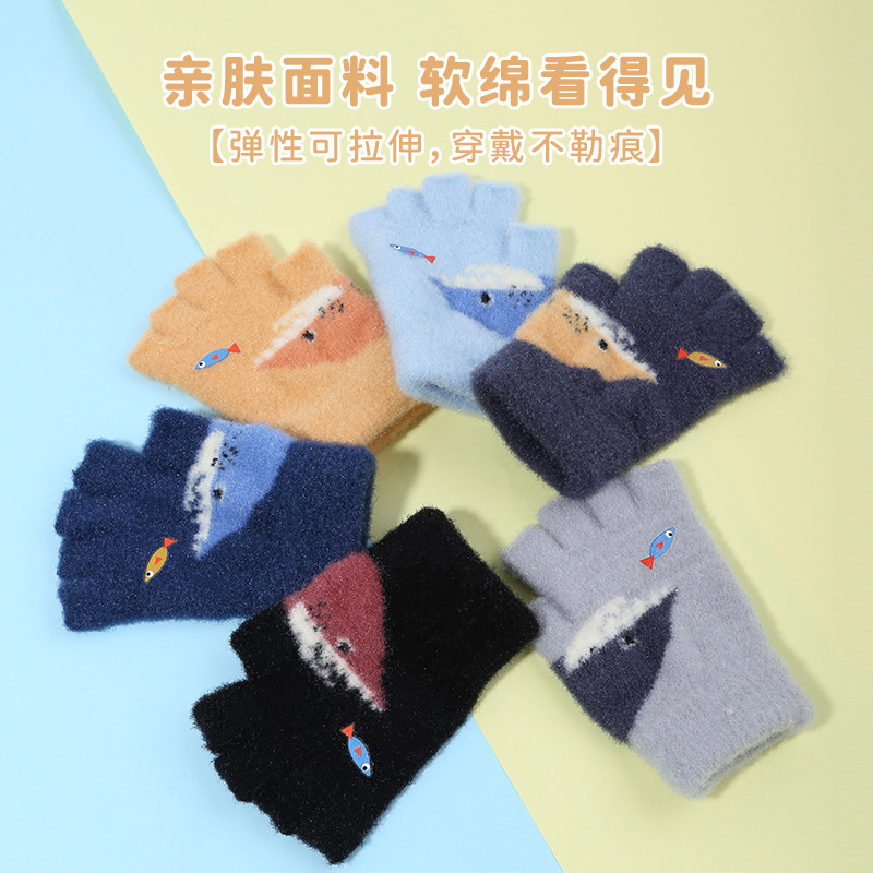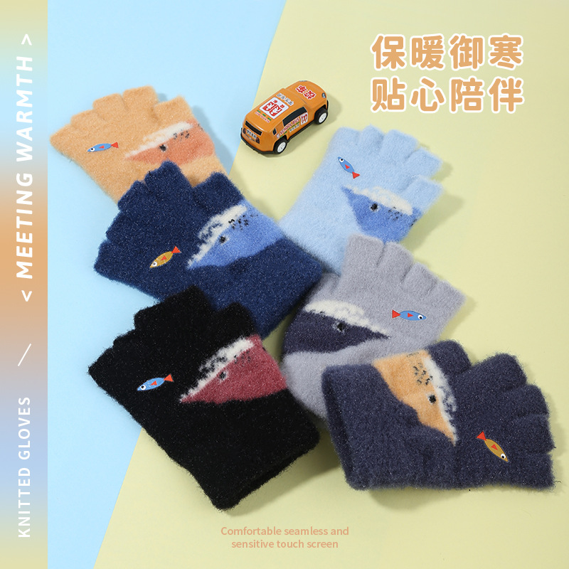 도매 가을 겨울 니트 보온 장갑 반손가락 방한 플러스 벨벳 두꺼운 초등학생 귀여운 만화 어린이 장갑