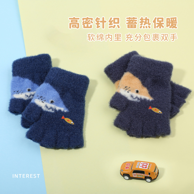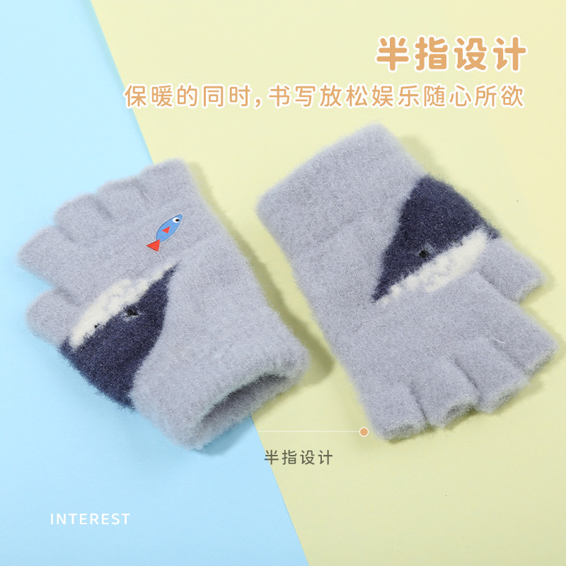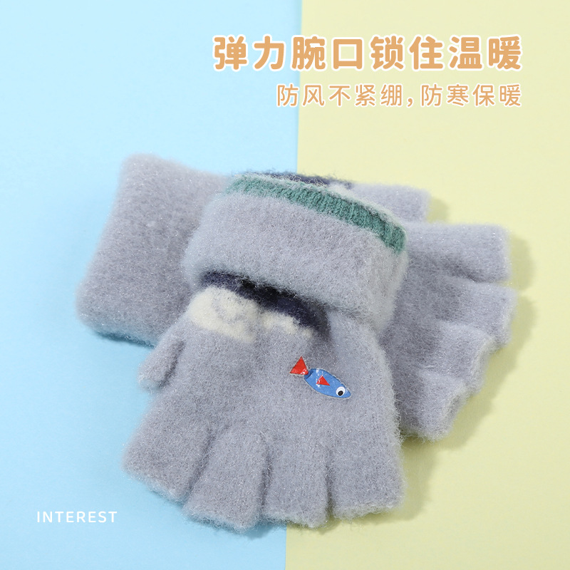 도매 가을 겨울 니트 보온 장갑 반손가락 방한 플러스 벨벳 두꺼운 초등학생 귀여운 만화 어린이 장갑스토어 가기