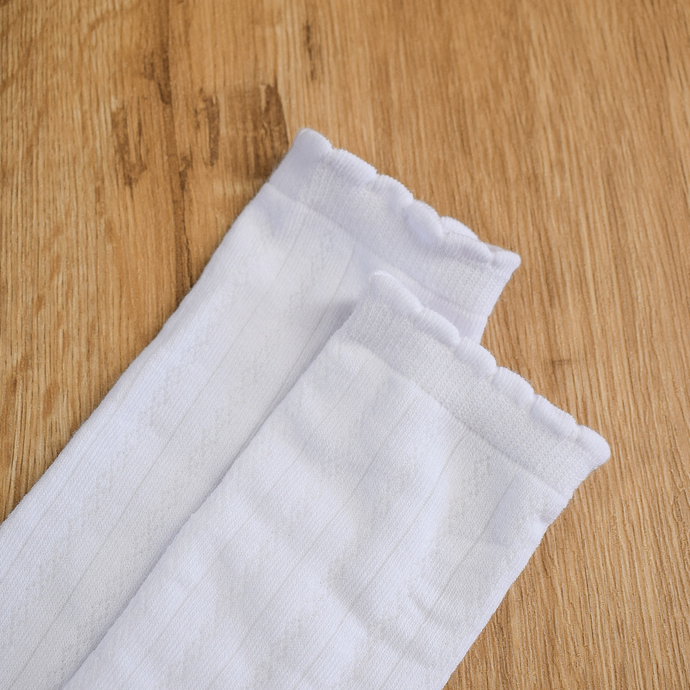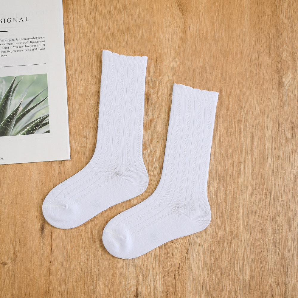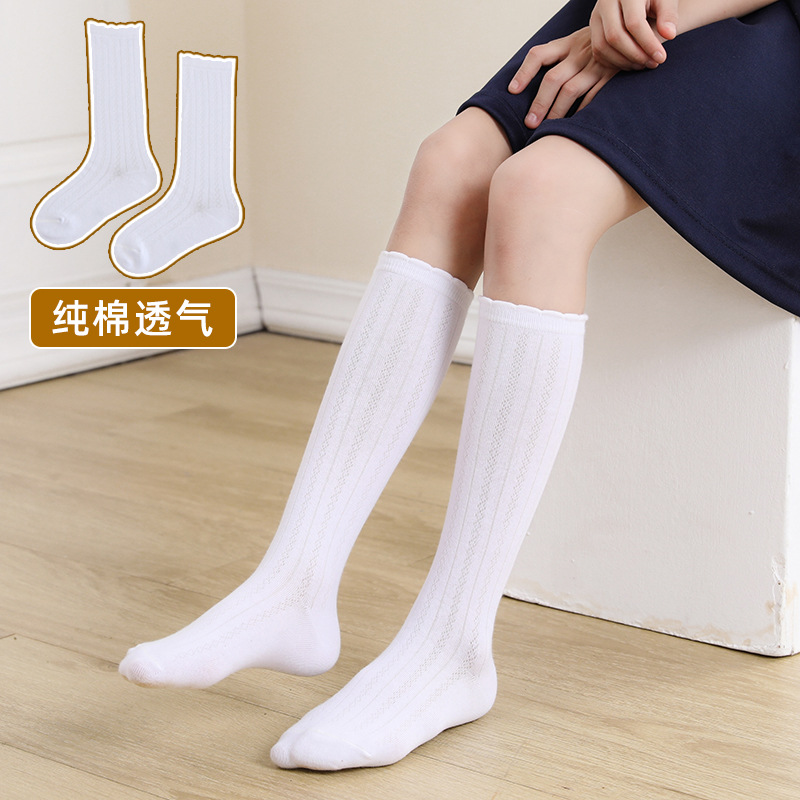 봄과 여름 소녀 스타킹 순수한 흰색 어린이 귀여운 코튼 공주 양말 여름 아기 종아리 양말 원피스 양말 도매