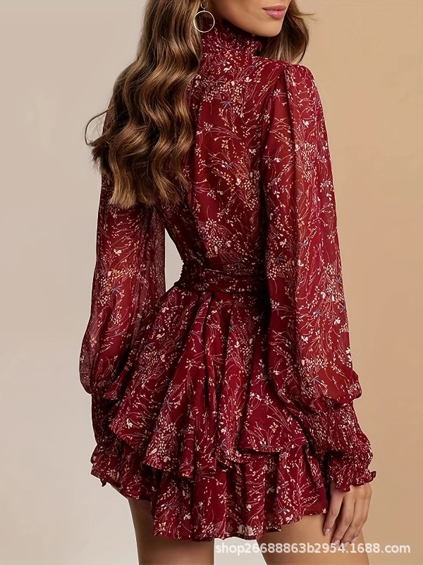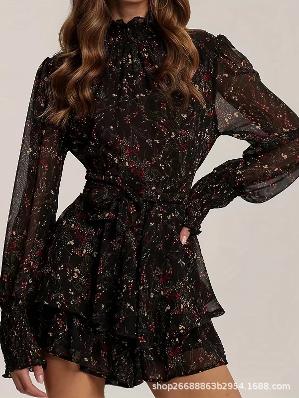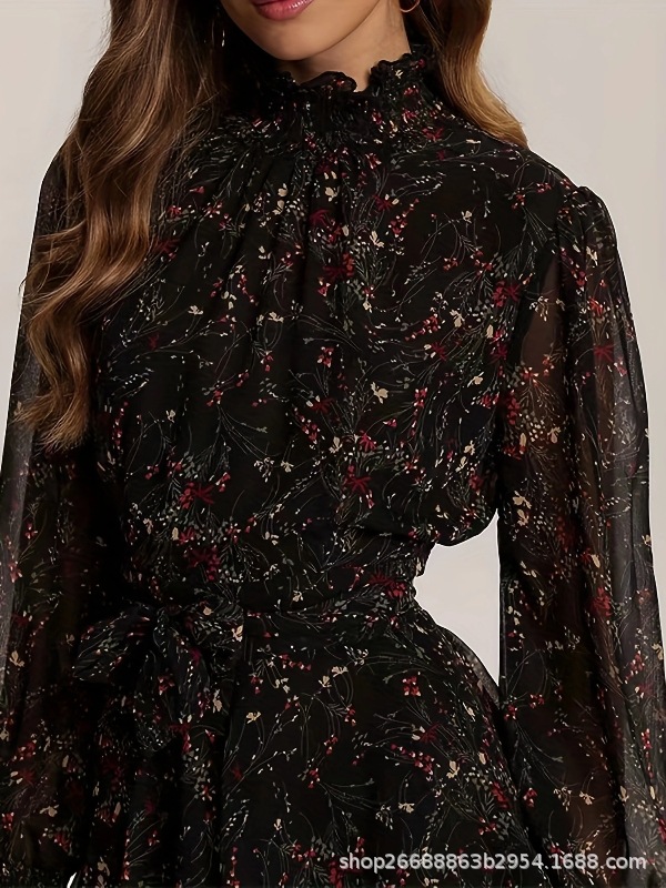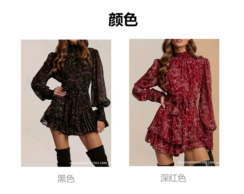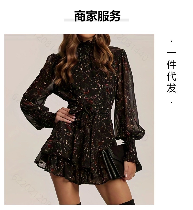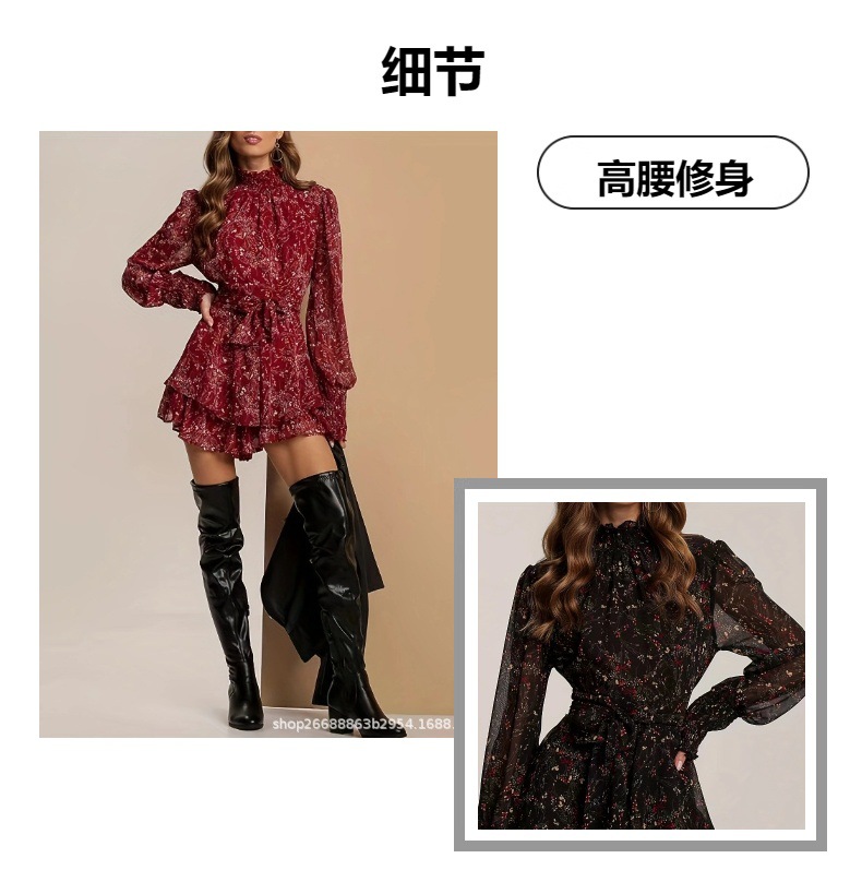 유럽과 미국 국경 새로운 높은 허리 다목적 벨트 긴 소매 원피스스토어 가기