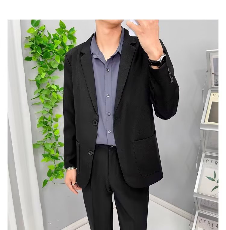 작은 세트 재킷 남자의 가을 남자의 한국 스타일 유행 비즈니스 모든 매치 홍콩 스타일 Ruffian 잘생긴 캐주얼 세트 재킷 청소년스토어 가기