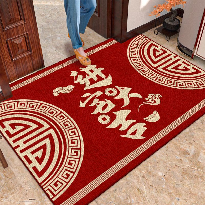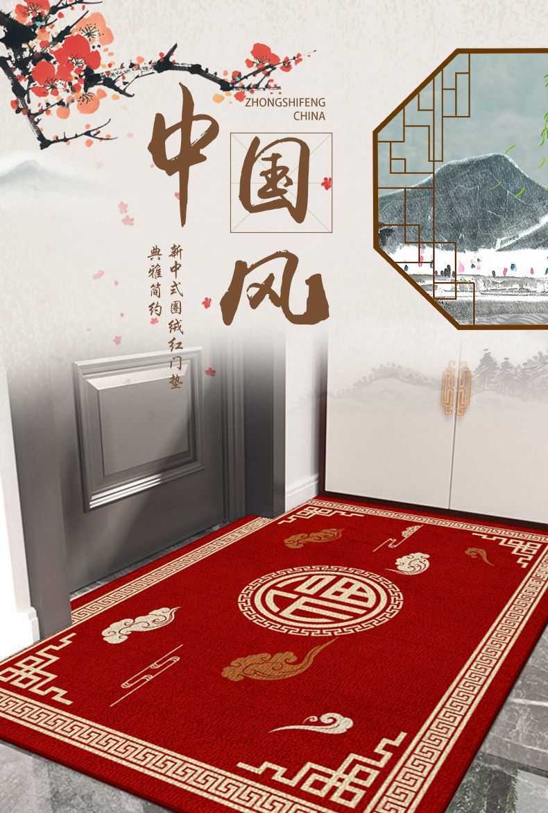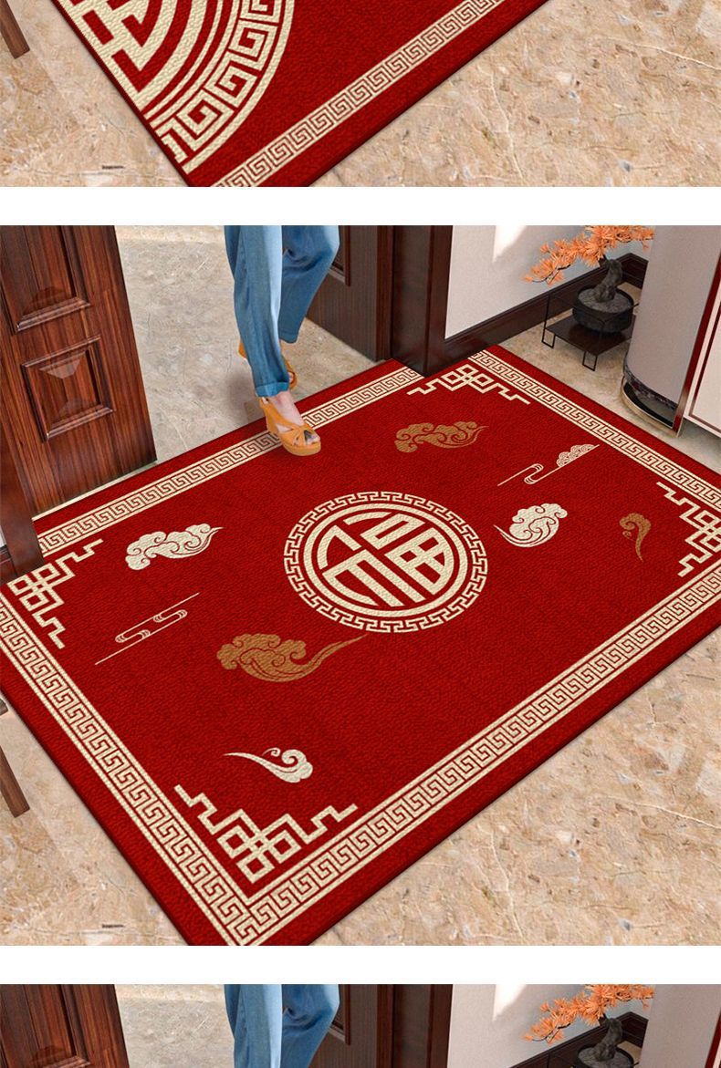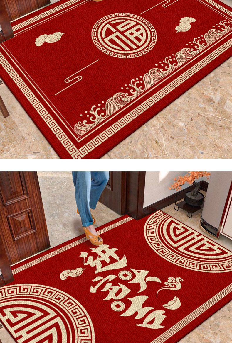 새로운 중국식 현관 도어 매트 축제 레드 현관 문 문지르는 발 매트 내마모성 벨벳 매트 관리가 용이합니다