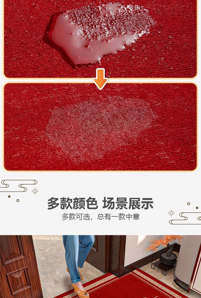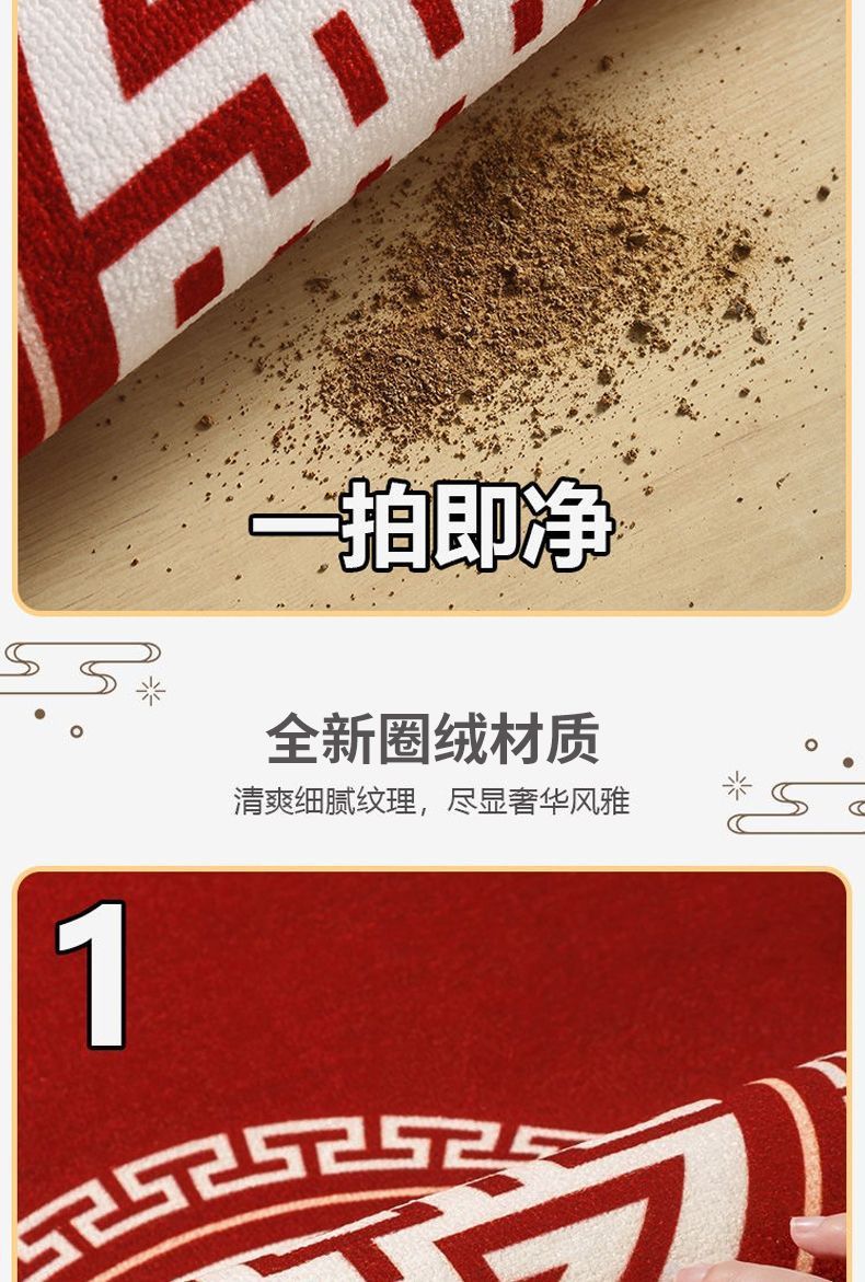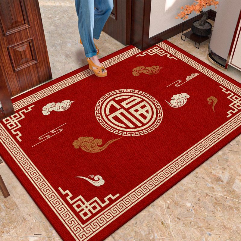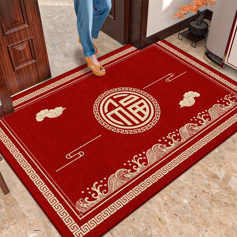 새로운 중국식 현관 도어 매트 축제 레드 현관 문 문지르는 발 매트 내마모성 벨벳 매트 관리가 용이합니다