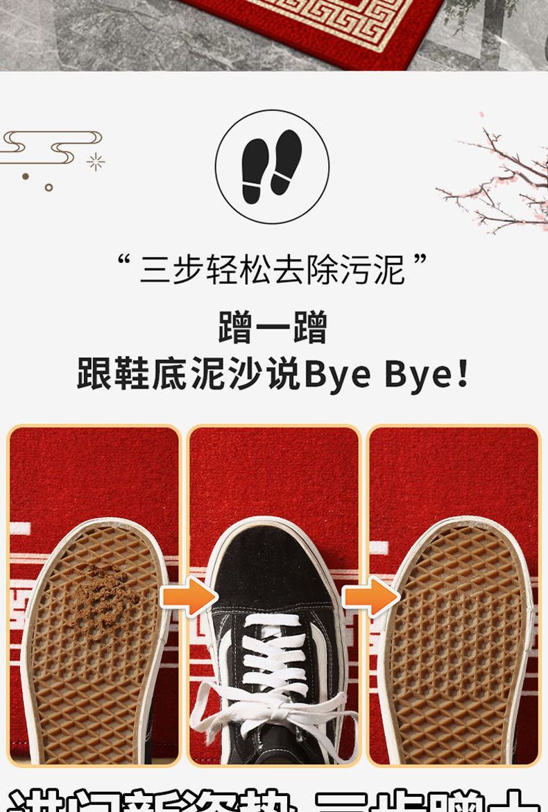 새로운 중국식 현관 도어 매트 축제 레드 현관 문 문지르는 발 매트 내마모성 벨벳 매트 관리가 용이합니다스토어 가기