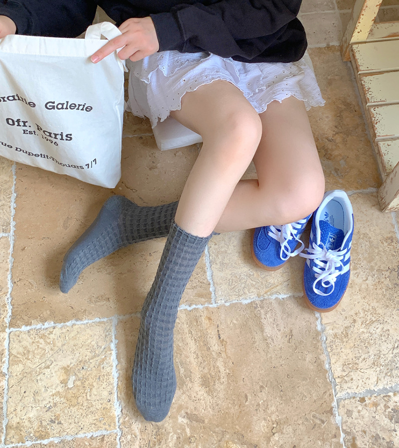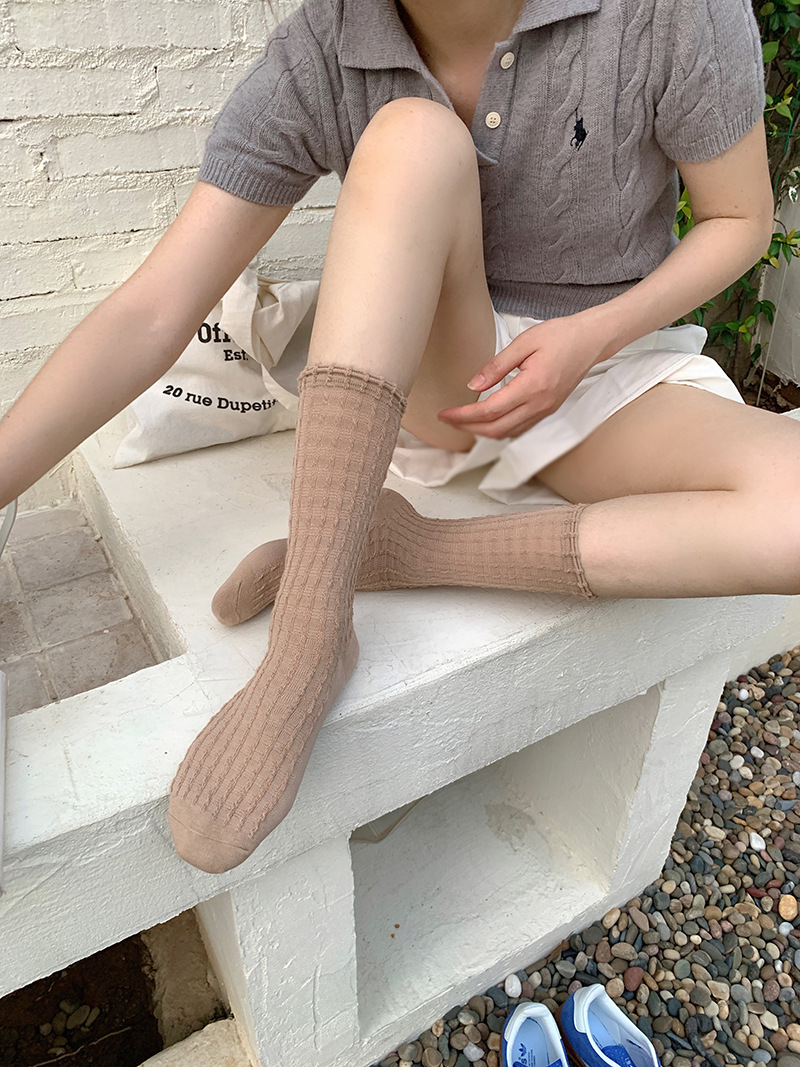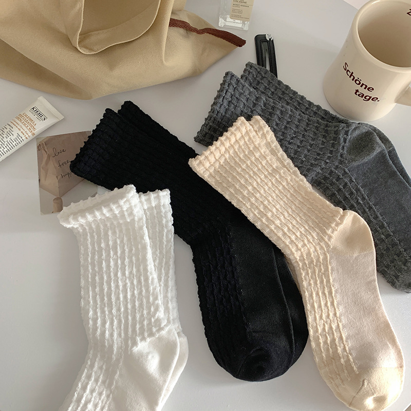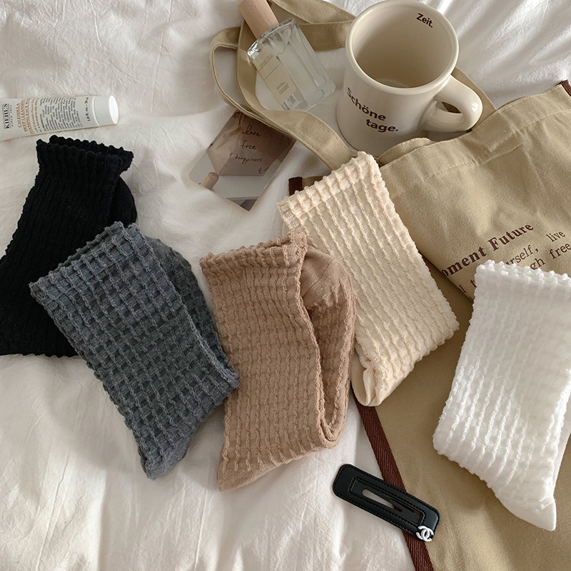 새로운 질감 감각 양말 여성의 얇은 통기성 스택 양말 단색 한국 양말의 간단한 유행 양말스토어 가기