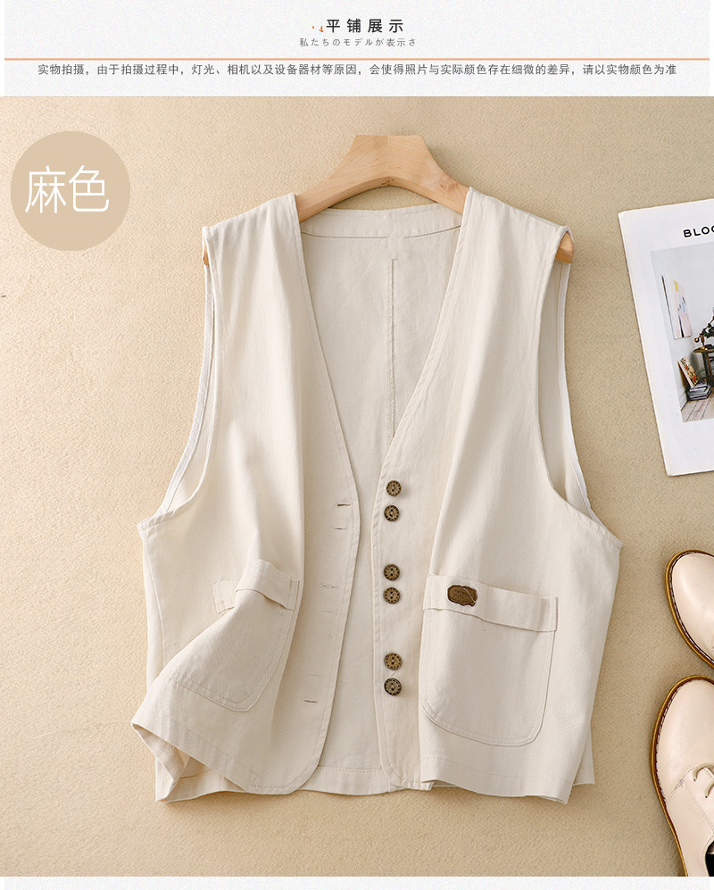 면과 린넨 조끼 여성 짧은 스타일 2025 봄과 여름 대형 지방 MM 한국어 버전 복고풍 양복 조끼 조끼 린넨 외부 조끼스토어 가기