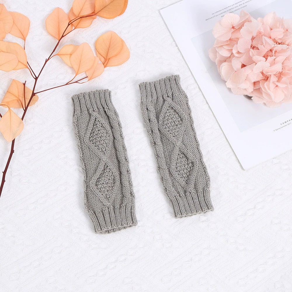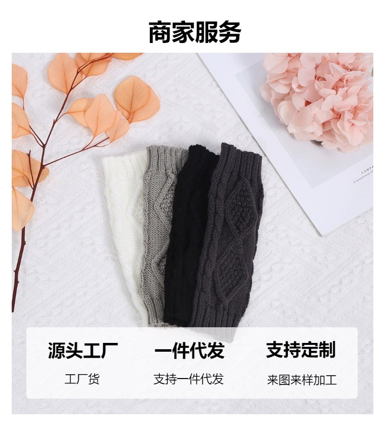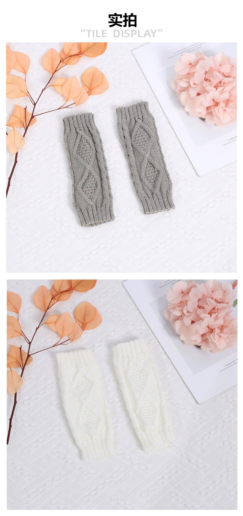 니트 소매 가을과 겨울 대학 스타일 짧은 반 손가락 따뜻한 장갑 귀여운 오픈 핑거 다이아몬드 격자 소매 도매