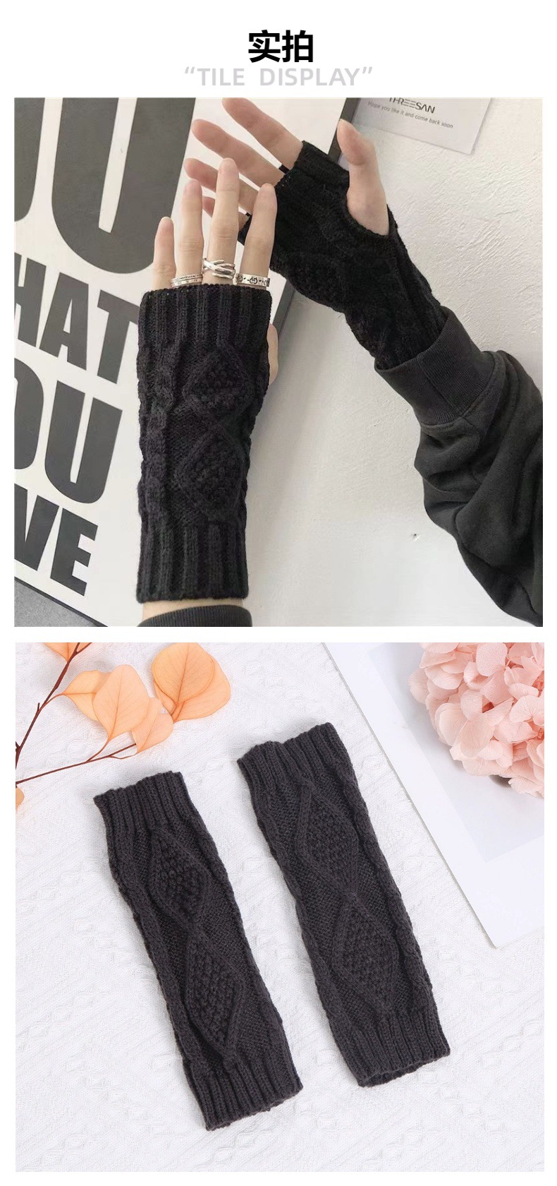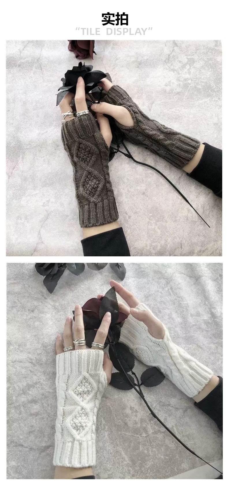 니트 소매 가을과 겨울 대학 스타일 짧은 반 손가락 따뜻한 장갑 귀여운 오픈 핑거 다이아몬드 격자 소매 도매스토어 가기