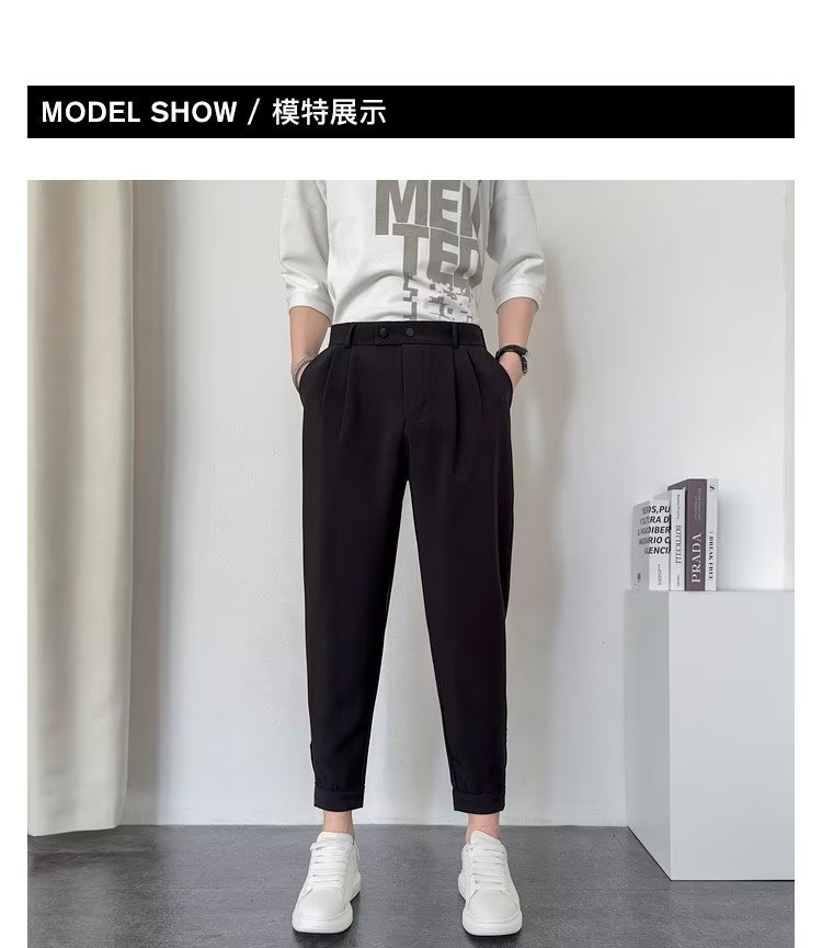 발목 길이 바지 남성 신상품 발목 바지 남성 한국식 슬림핏 인 플러튼 핸섬 레그 캐주얼 바지 단색 만능 남성 바지스토어 가기