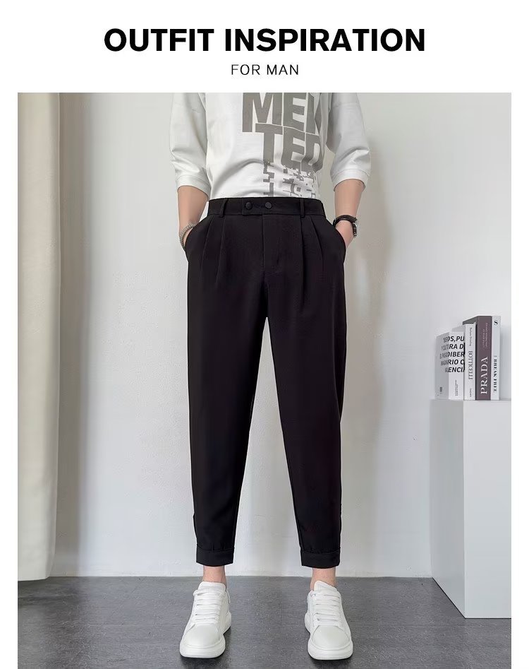 발목 길이 바지 남성 신상품 발목 바지 남성 한국식 슬림핏 인 플러튼 핸섬 레그 캐주얼 바지 단색 만능 남성 바지