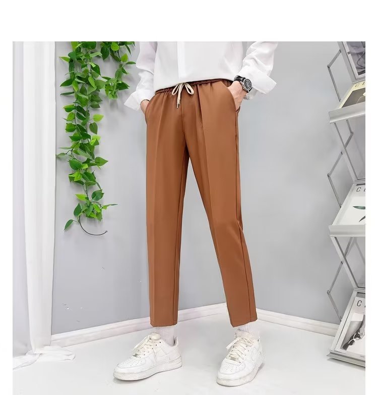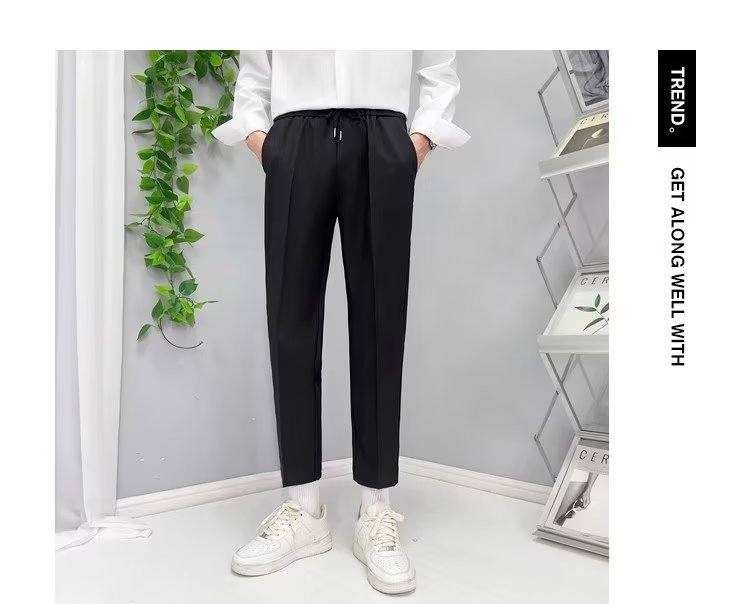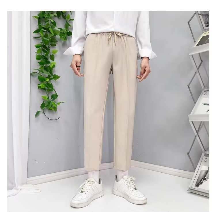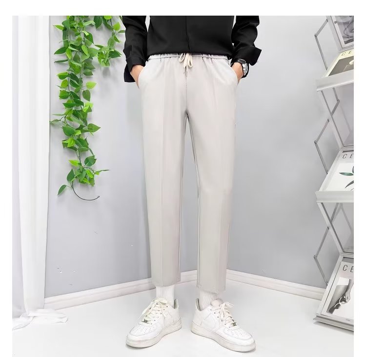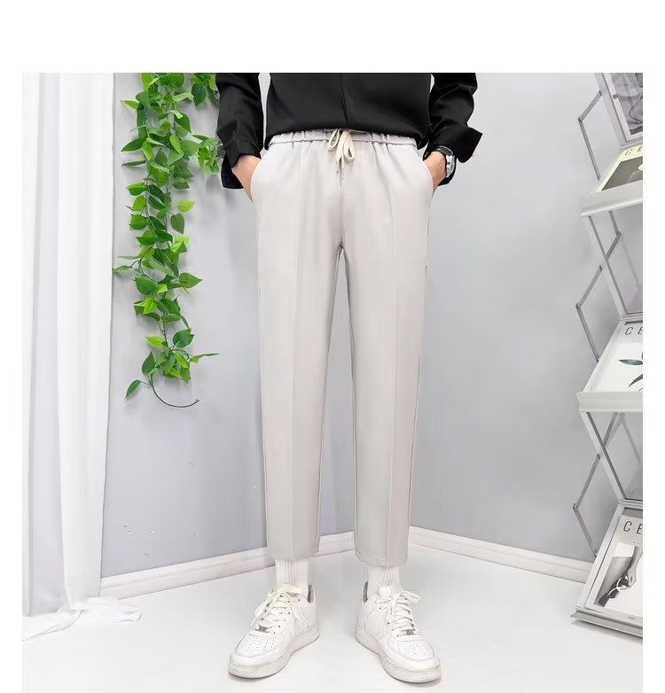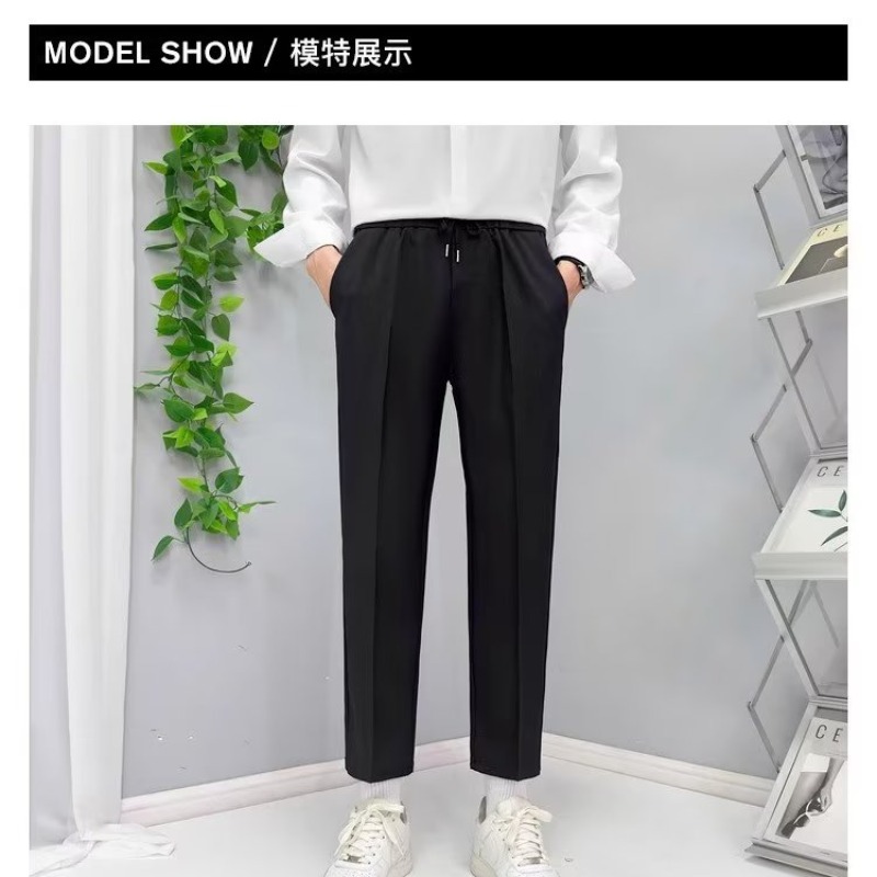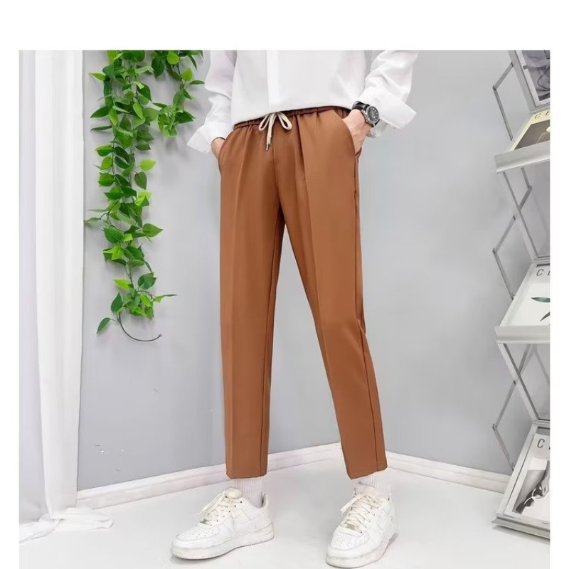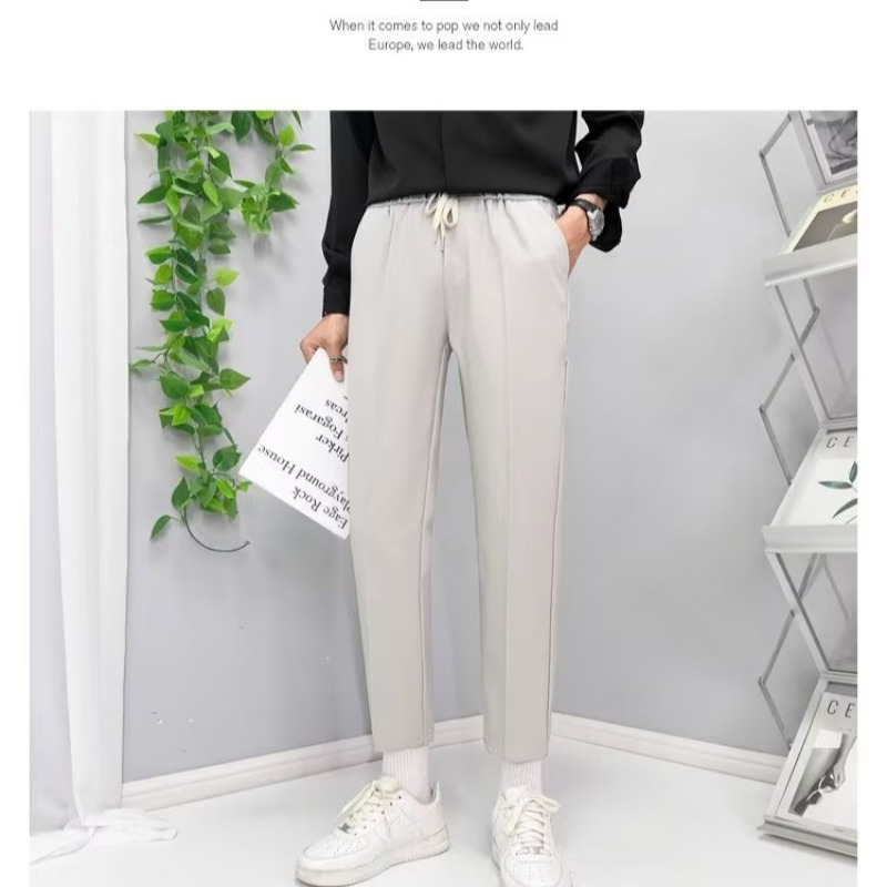 가을 새 소년 발목 길이 바지 드레이프 모든 매치 레이스업 스트레이트 세트 바지 느슨한 비 다림질 얇은 캐주얼 바지스토어 가기