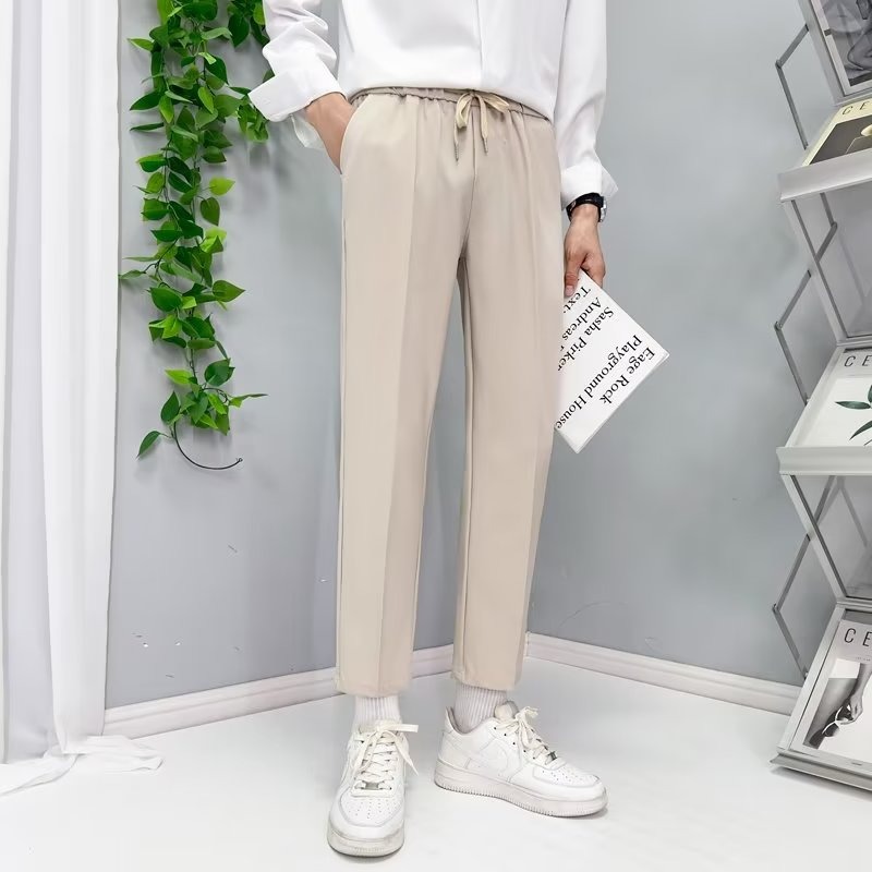 가을 새 소년 발목 길이 바지 드레이프 모든 매치 레이스업 스트레이트 세트 바지 느슨한 비 다림질 얇은 캐주얼 바지
