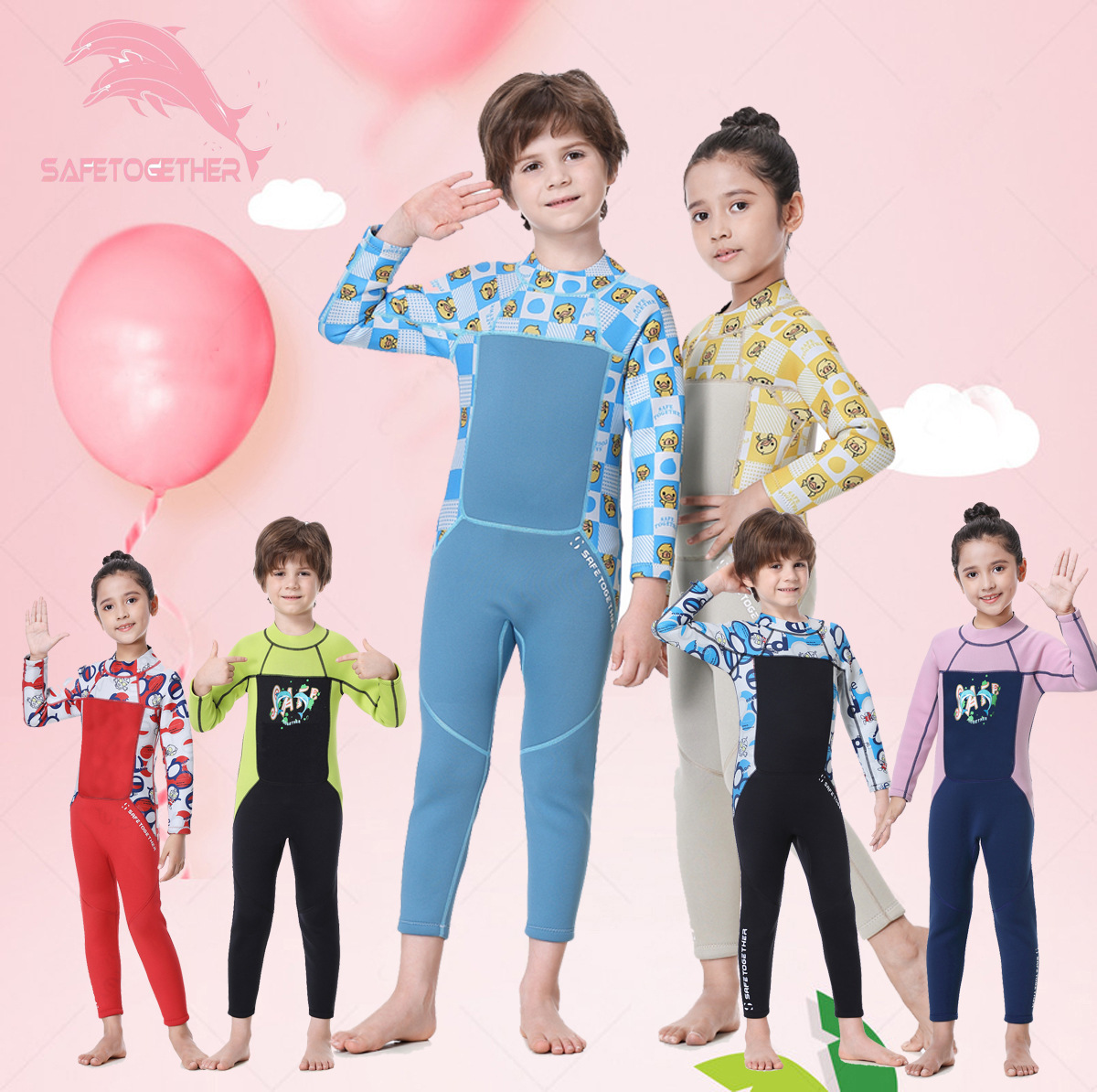 어린이 잠수복 2.5MM 원피스 긴팔 만화 소년과 소녀를위한 두꺼운 따뜻한 스노클링 수영 서핑 슈트 R028