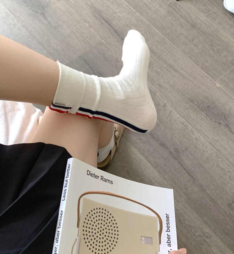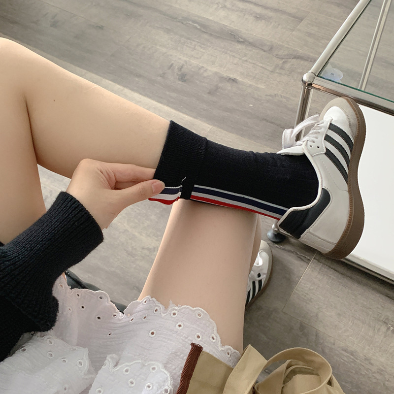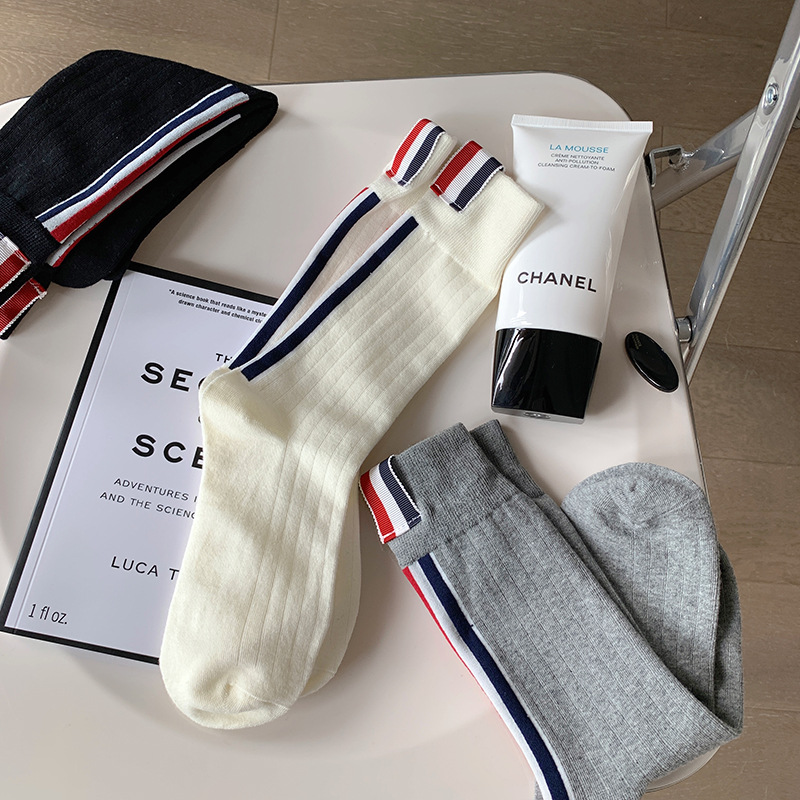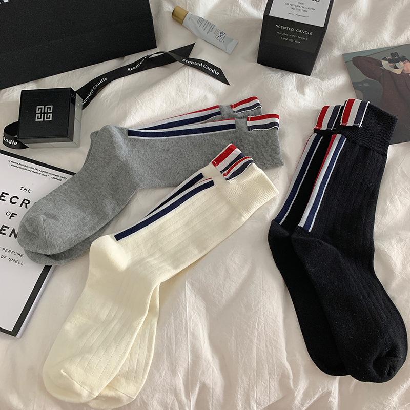 TB 포스트 라벨 중간 길이 양말 여성용 스택 양말 면 양말 유행 양말의 색상 일치 한국 양말 새로운 통기성 양말스토어 가기