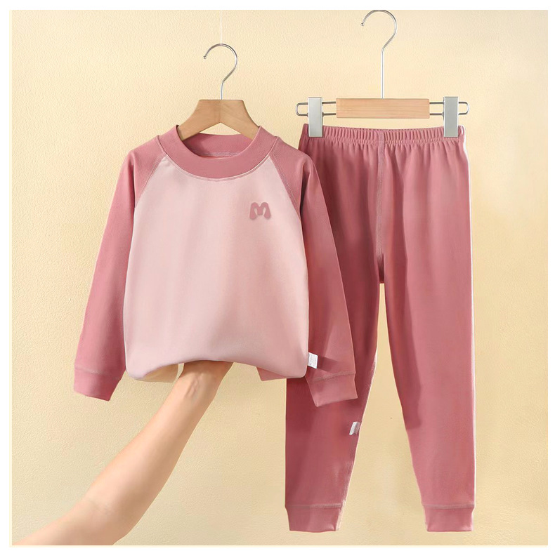 어린이 벨벳 따뜻한 세트 어린이 가을 의류 및 바지 소년 소녀 속옷 가정 의류 아기 기초 아동 의류