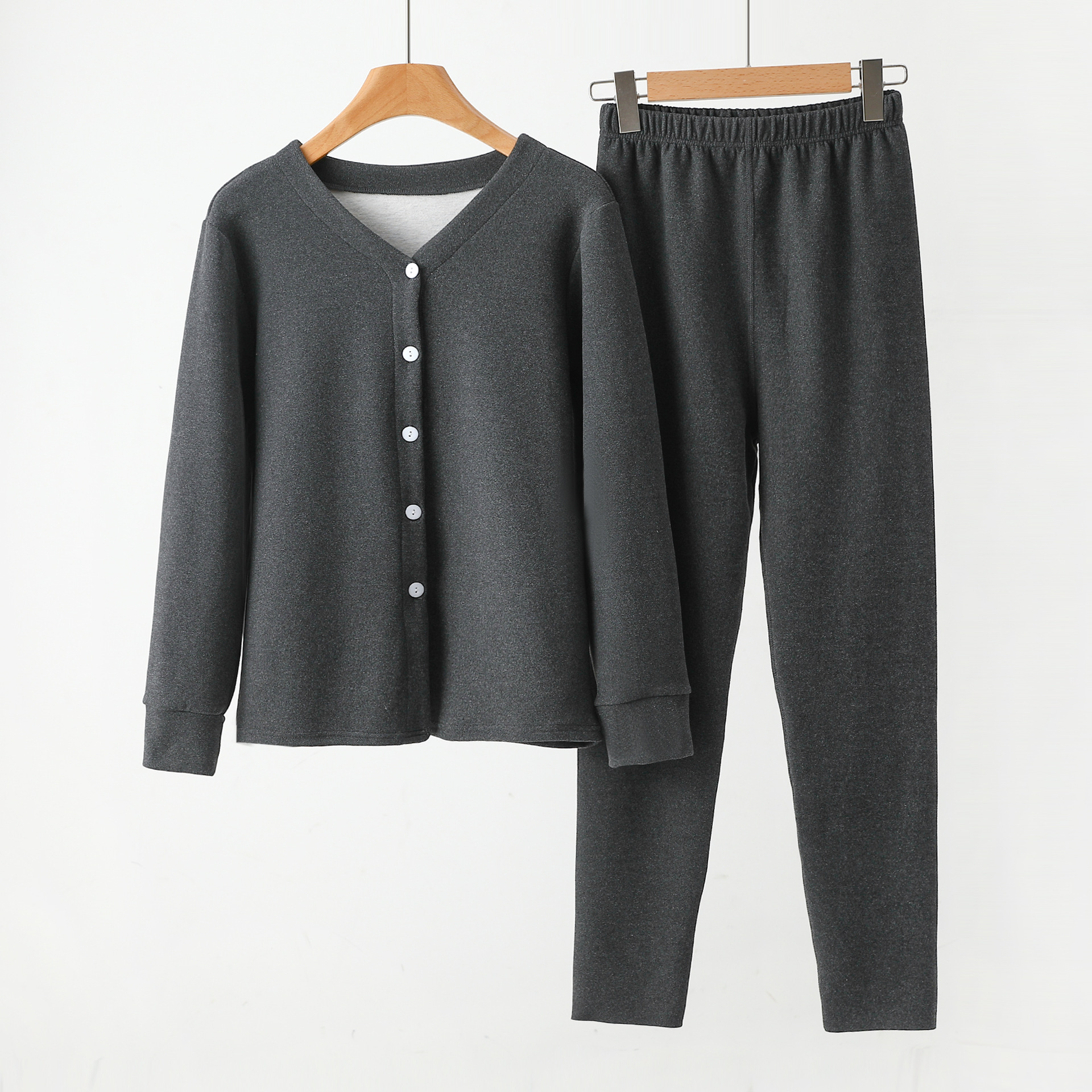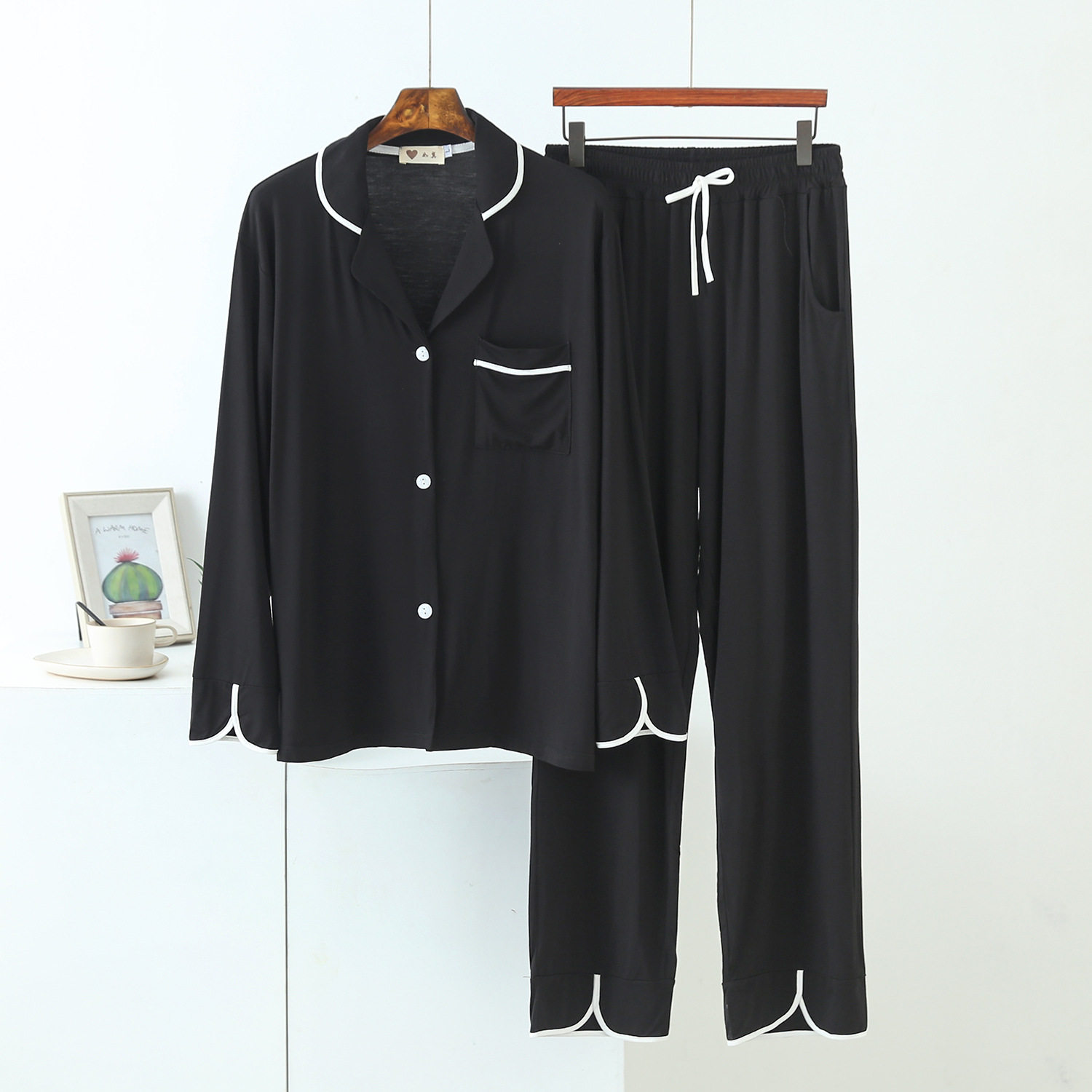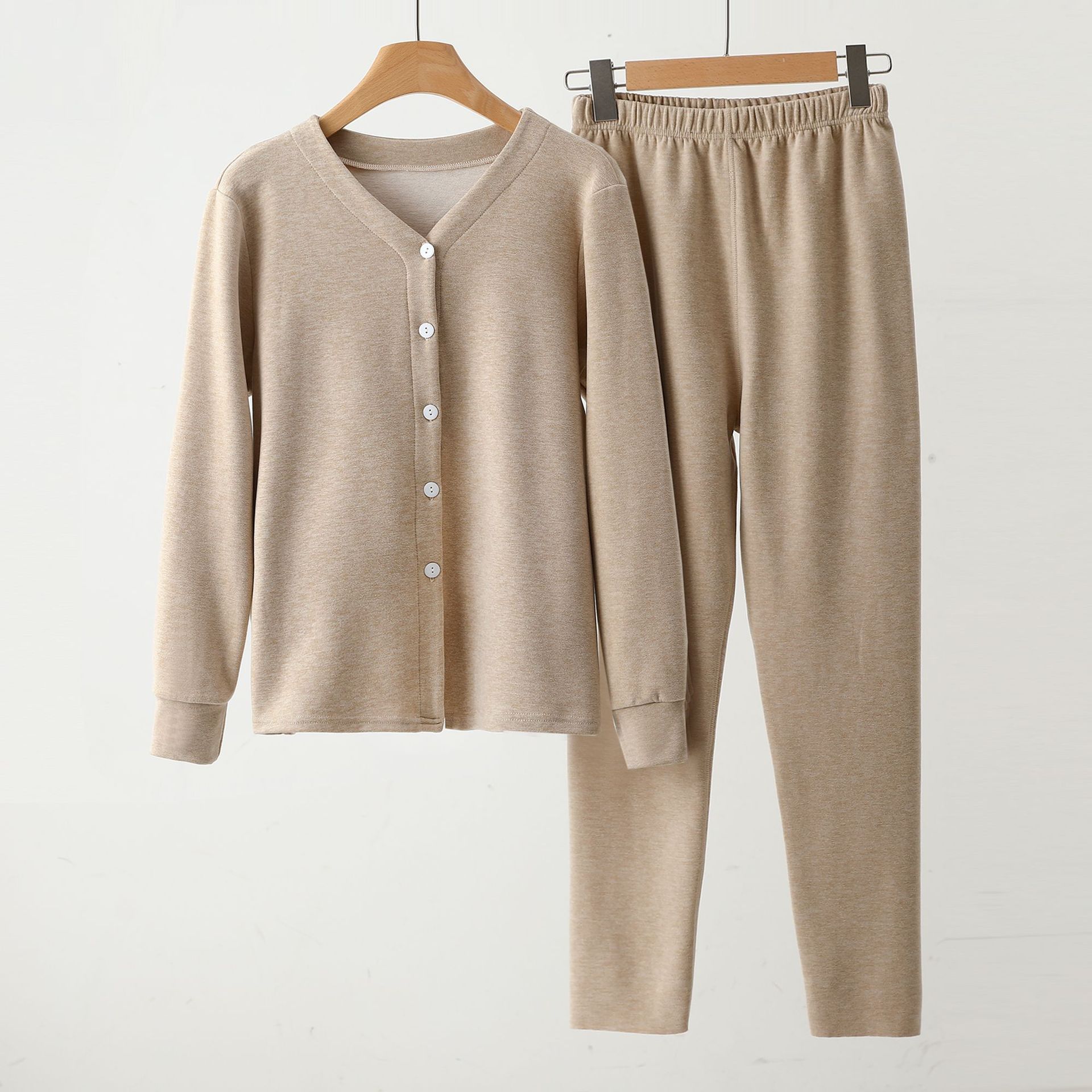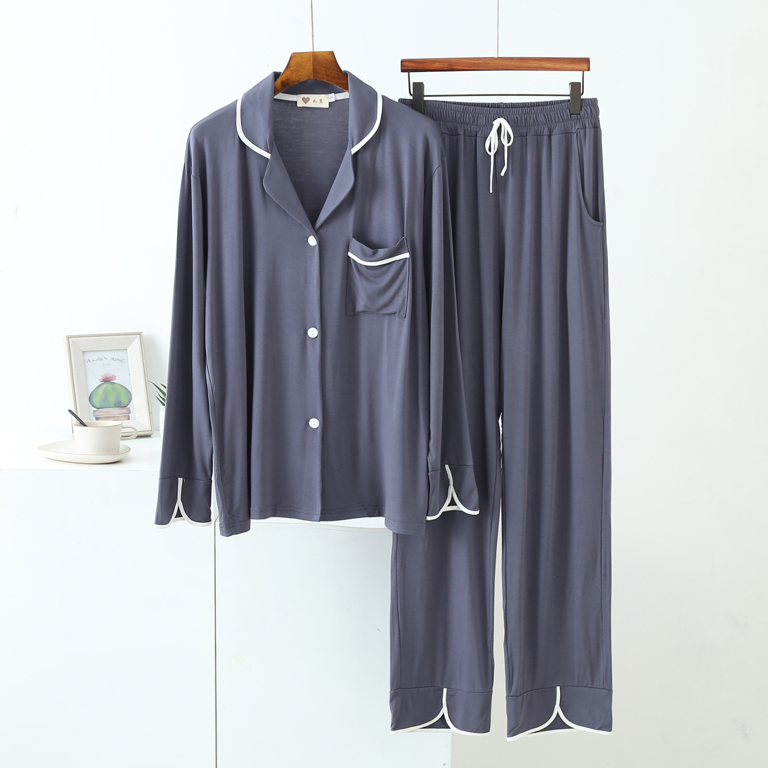 Y 암호화 된 잠옷 여성 캐주얼 세트 우아한 작은 옷깃 카디건 속옷 솔리드 컬러 소프트 울 실크 홈스토어 가기