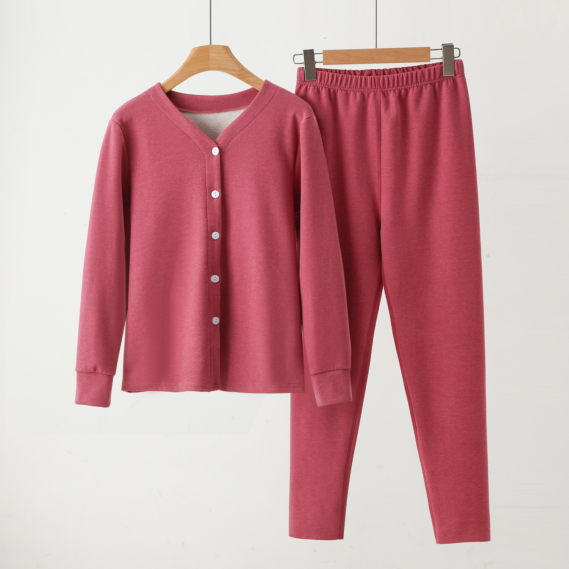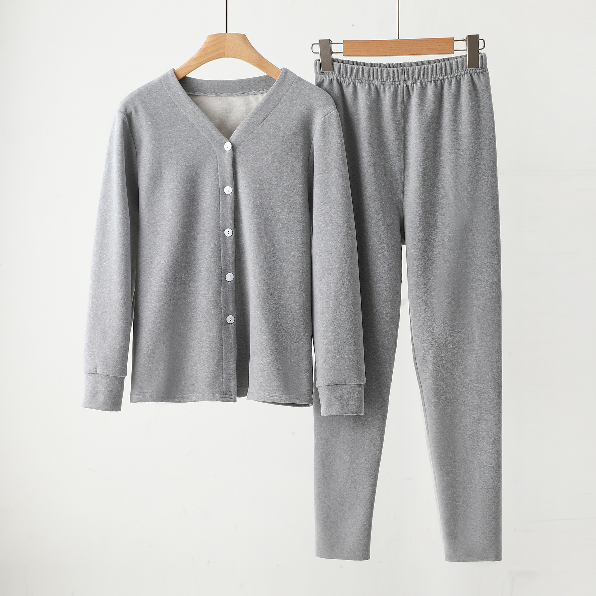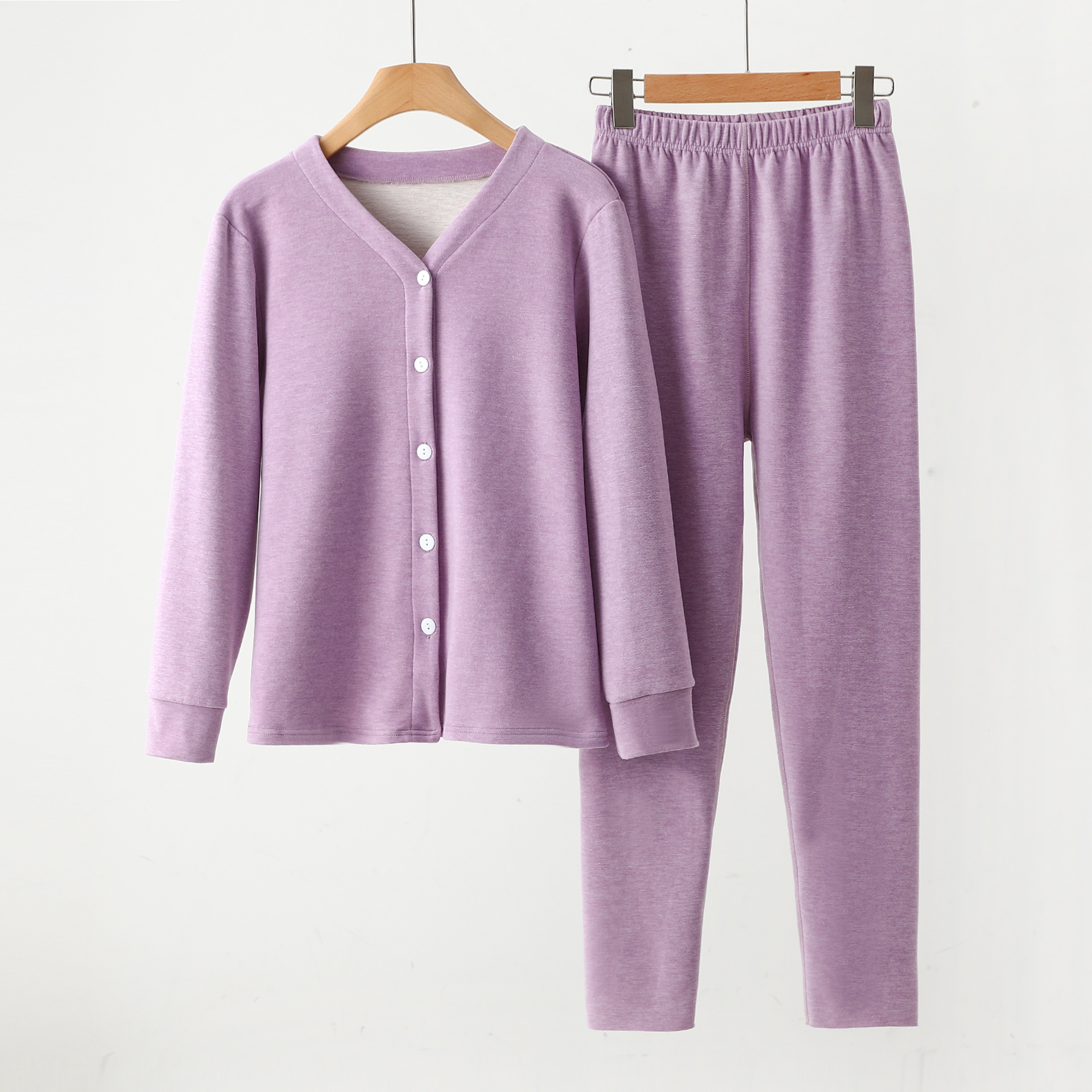 Y 암호화 된 잠옷 여성 캐주얼 세트 우아한 작은 옷깃 카디건 속옷 솔리드 컬러 소프트 울 실크 홈