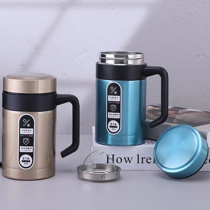 크로스보더 316 스테인리스 오피스 컵 2 층 찻잔 사업 고급 2 층 대용량 보온병 컵