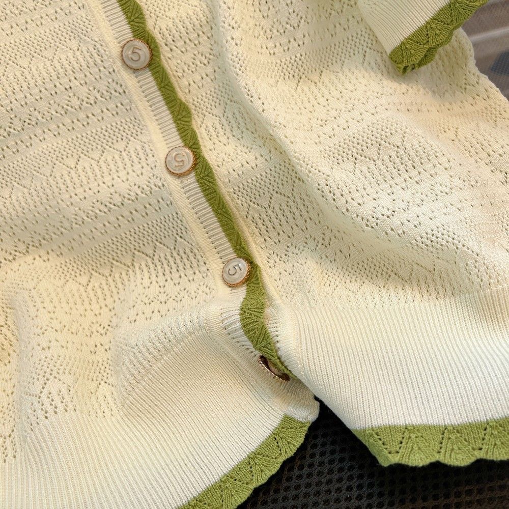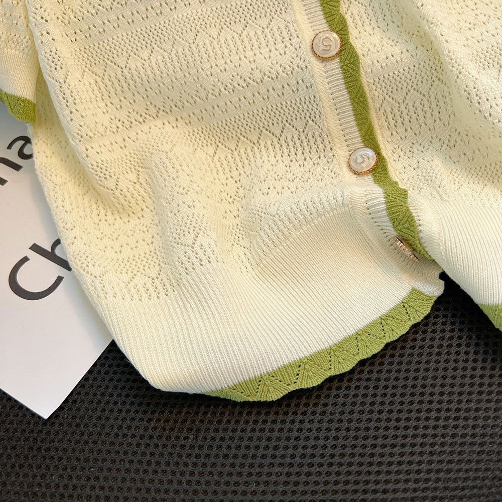 여름 얇은 아이스 실크 니트 가디건 반팔 여성용 2023 새로운 V-넥 하이 웨이스트 탑 스몰 샤넬 스타일 짧은 연령 감소스토어 가기