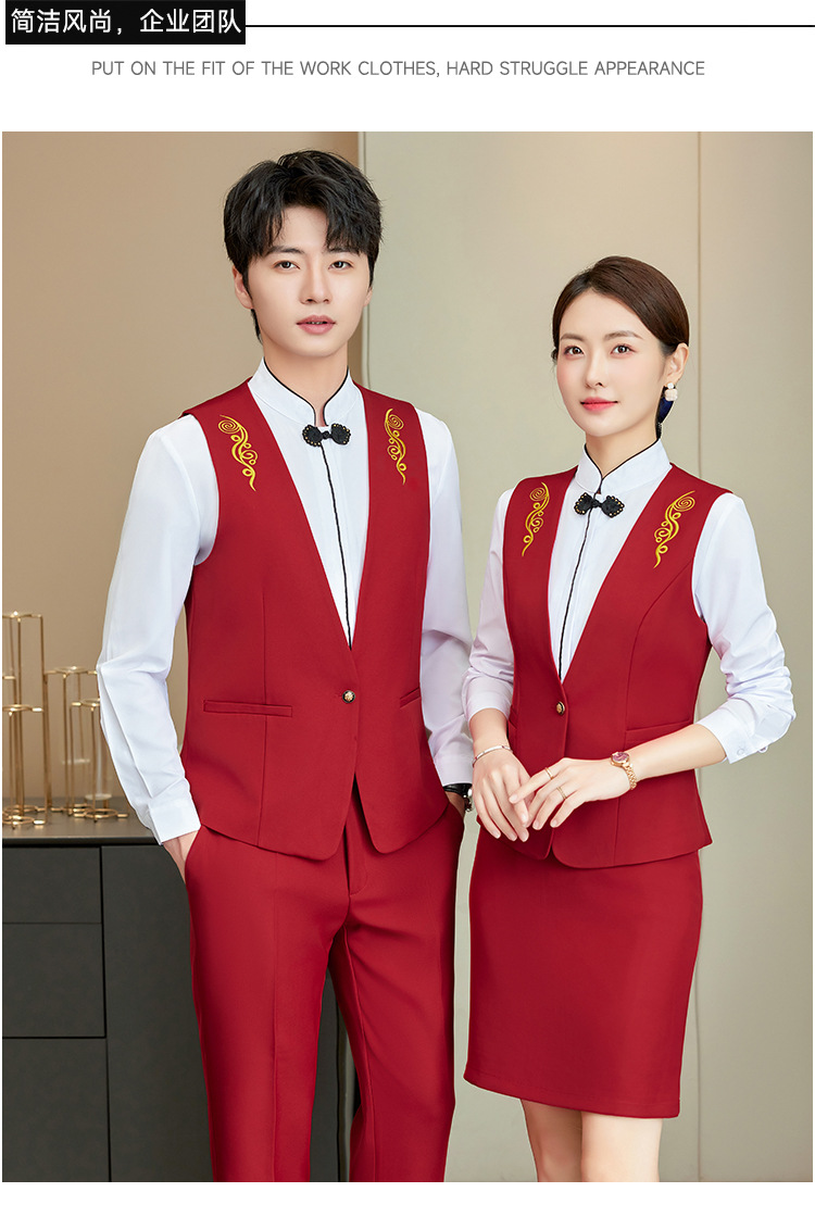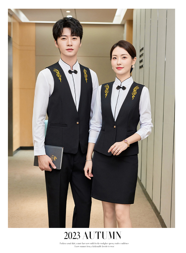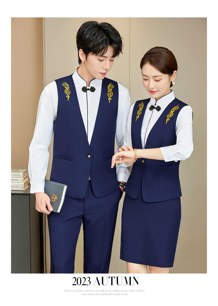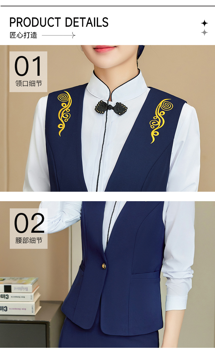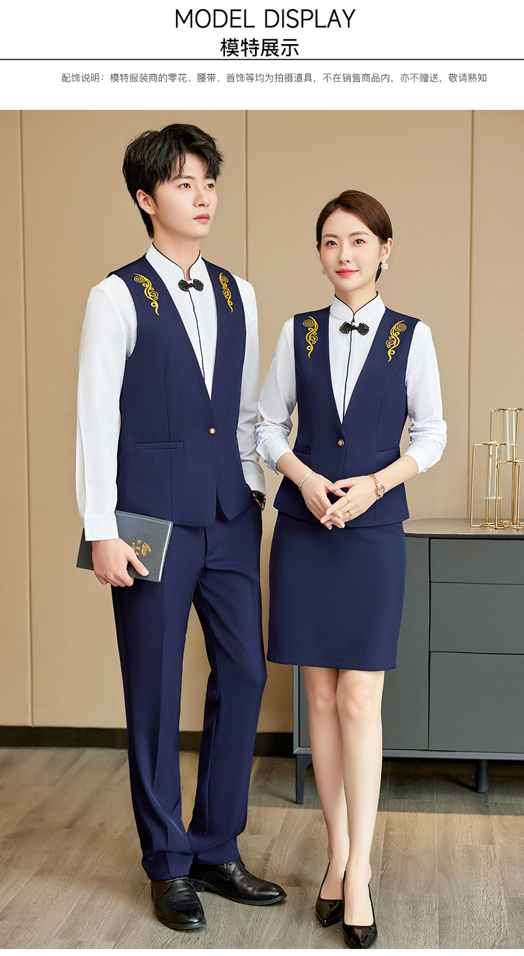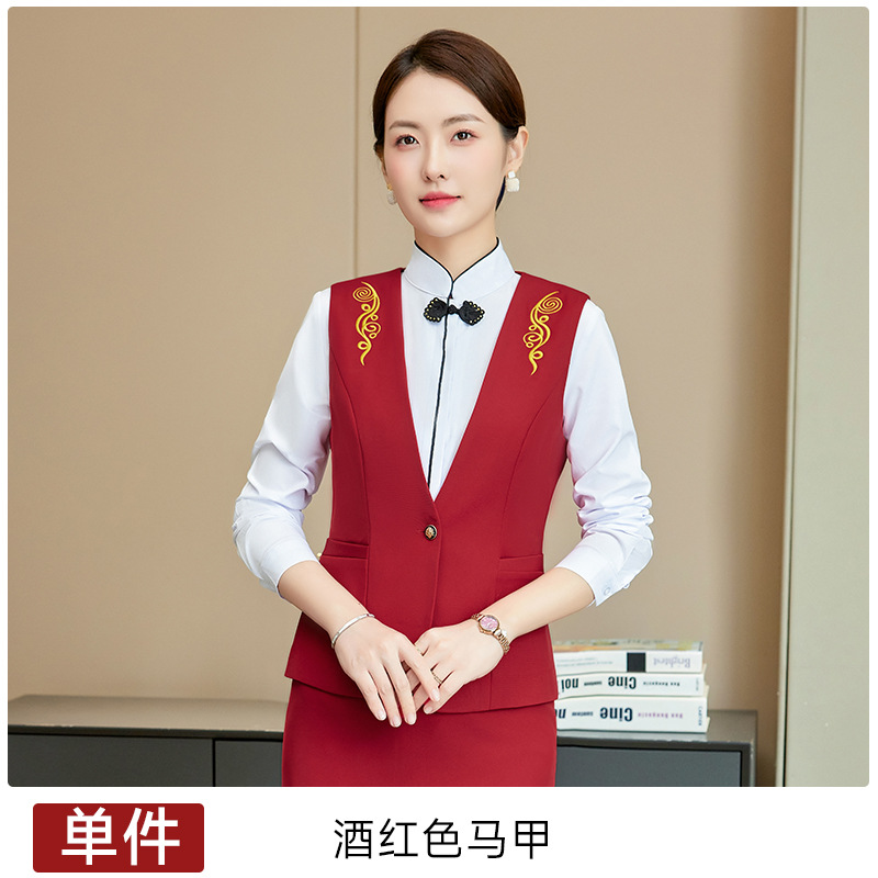 Qigu Niang 호텔 리셉션 고급 전문 조끼 세트 중국 레스토랑 웨이터 바지 여성스토어 가기