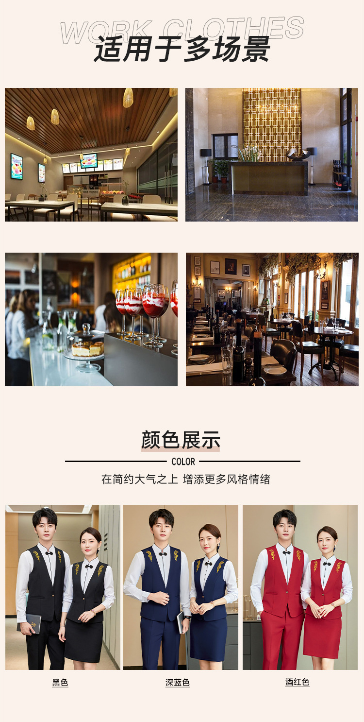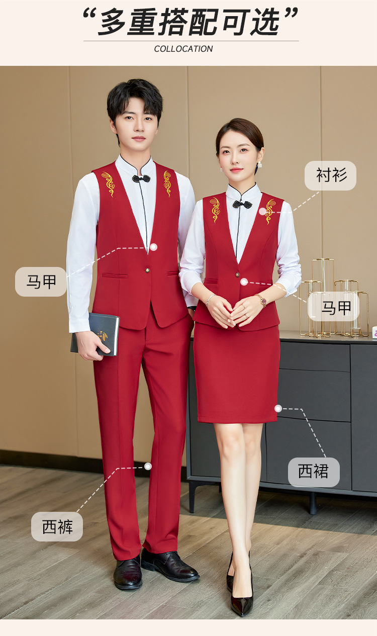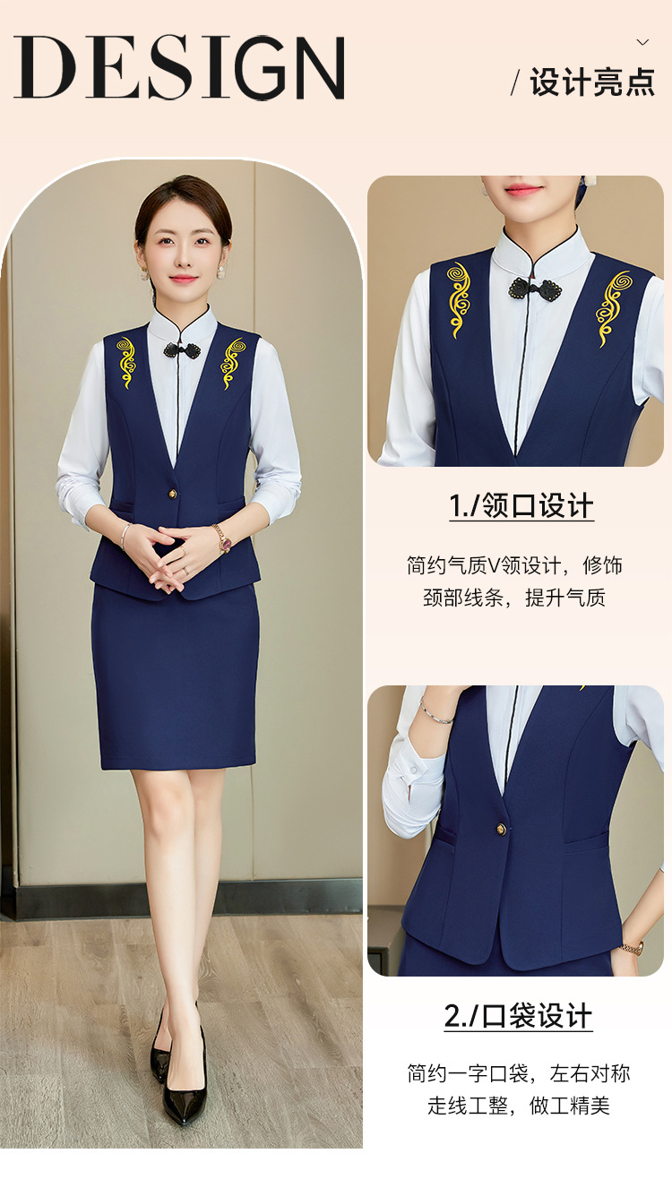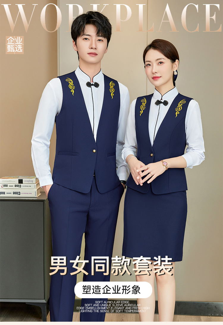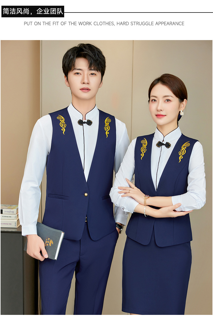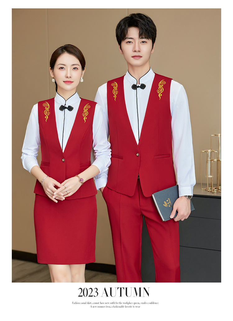Qigu Niang 호텔 리셉션 고급 전문 조끼 세트 중국 레스토랑 웨이터 바지 여성스토어 가기
