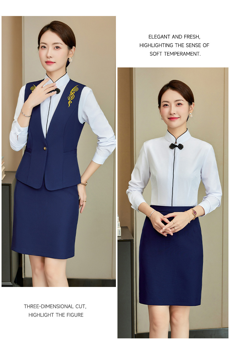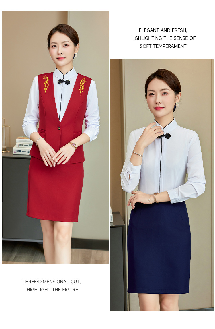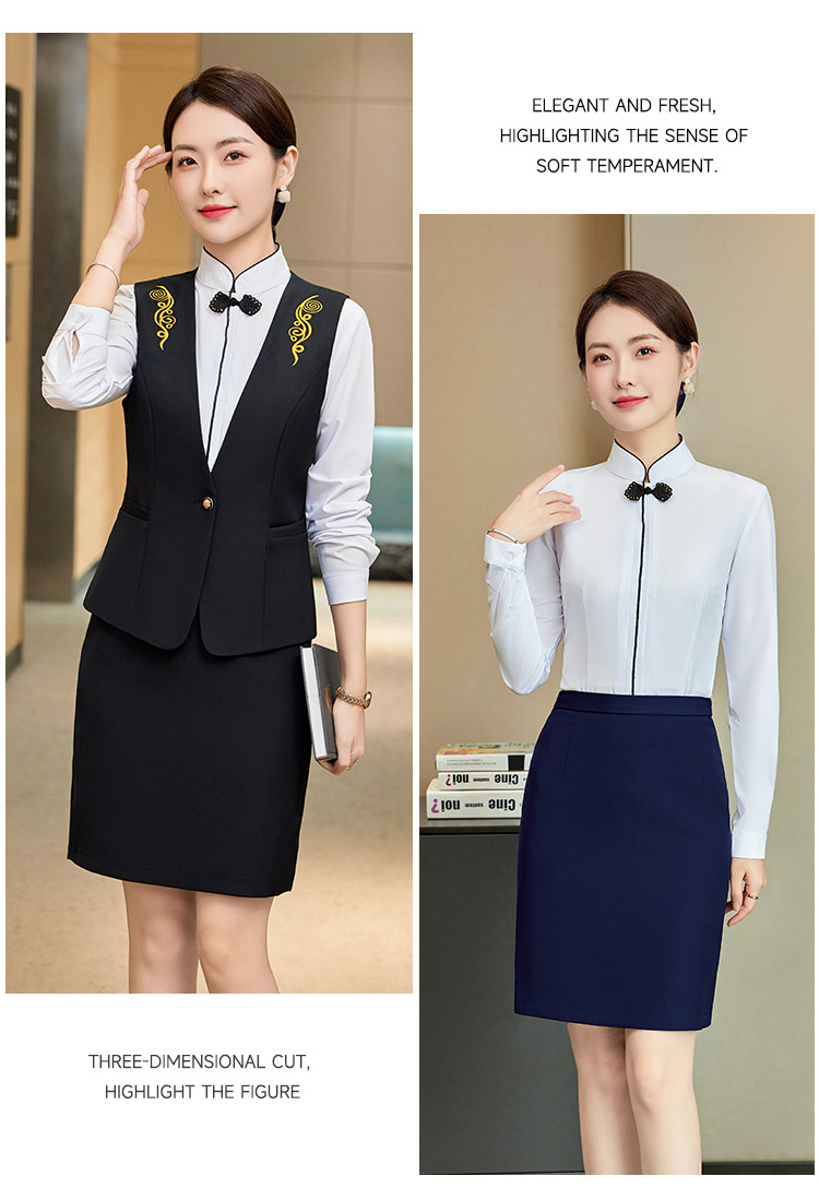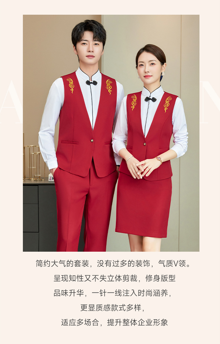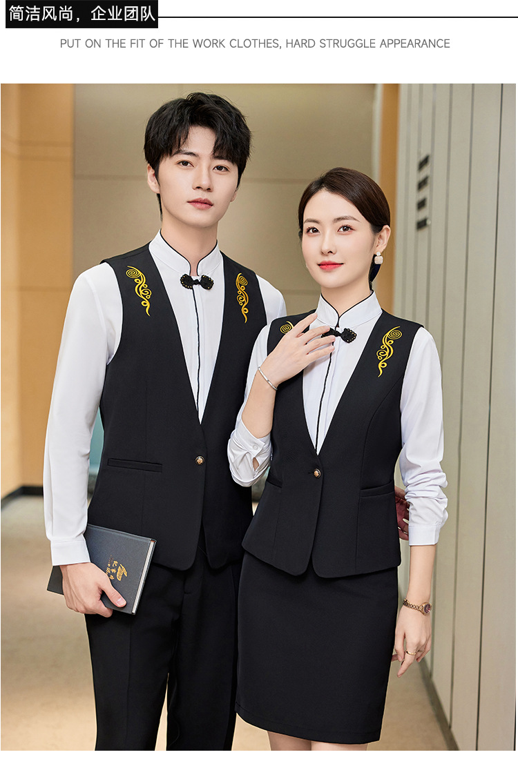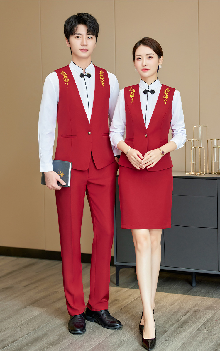 Qigu Niang 호텔 리셉션 고급 전문 조끼 세트 중국 레스토랑 웨이터 바지 여성스토어 가기