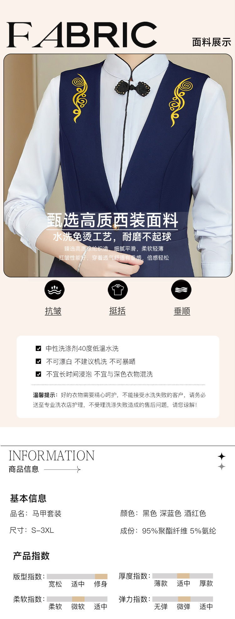 Qigu Niang 호텔 리셉션 고급 전문 조끼 세트 중국 레스토랑 웨이터 바지 여성