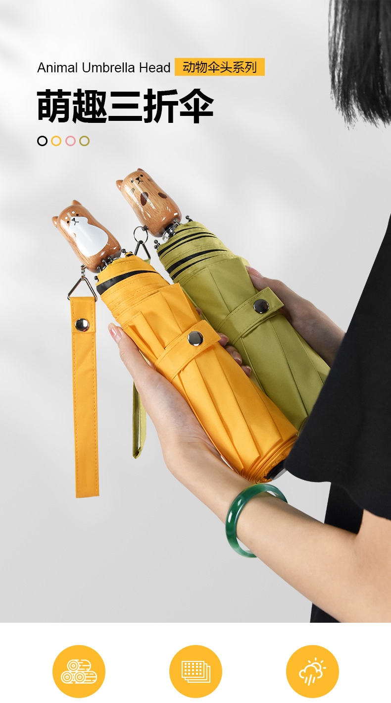 고양이 차이 개 커플 우산 나무 손잡이 접는 우산 단색 맑은 우산 자외선 차단제 로고 선물 우산