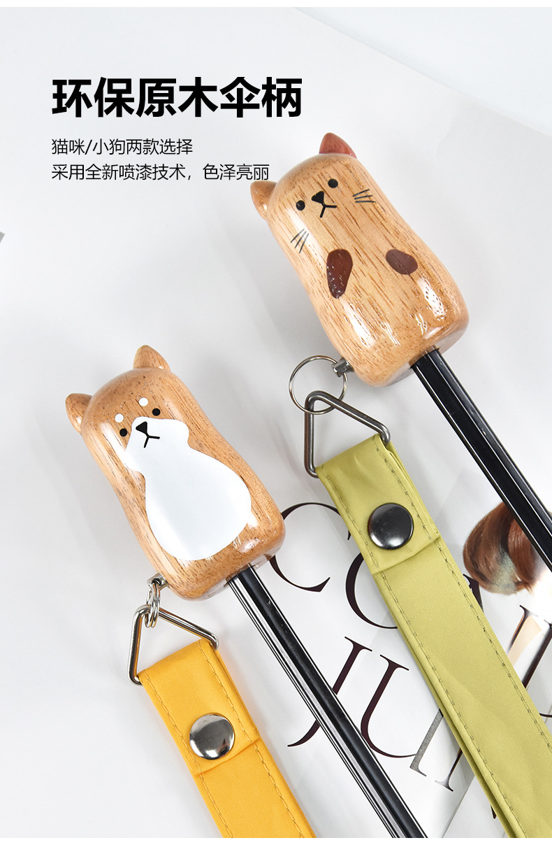 고양이 차이 개 커플 우산 나무 손잡이 접는 우산 단색 맑은 우산 자외선 차단제 로고 선물 우산스토어 가기