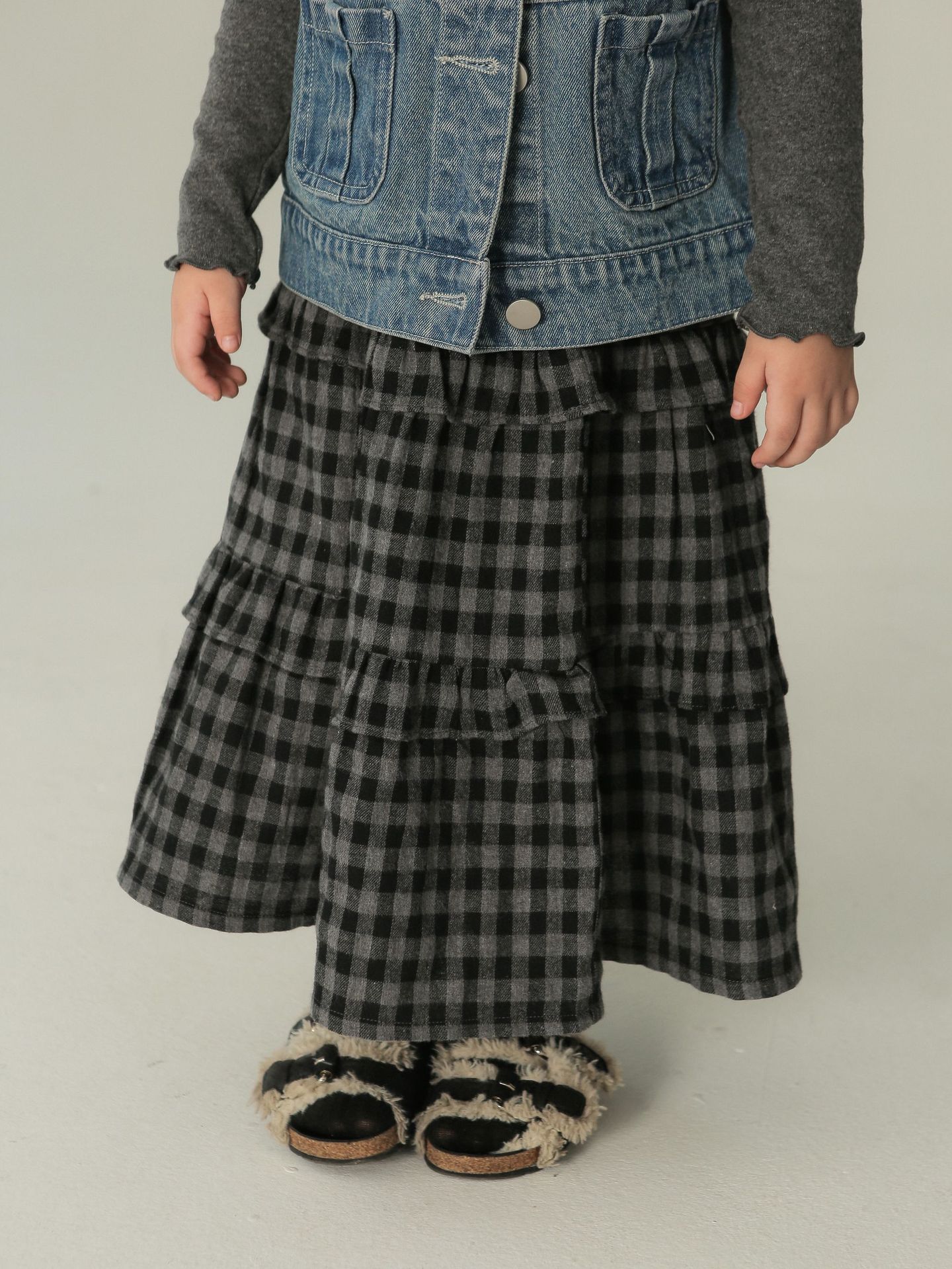 BOBOKIDS 가을 2023 어린이 치마 일본 아동복 소녀 샌딩 격자 무늬 치마