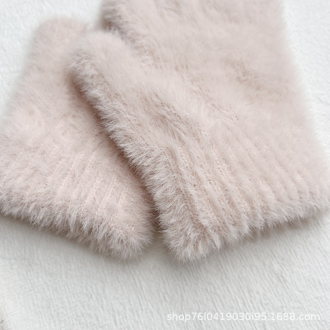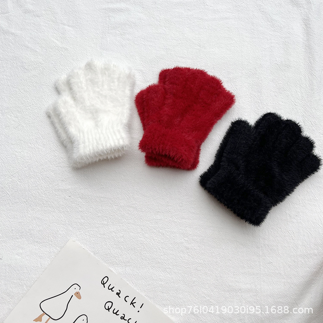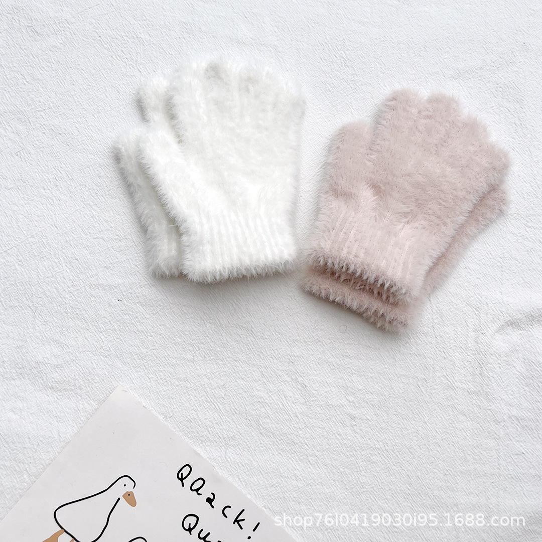 어린이 니트 장갑의 한국어 버전 간단한 단색 밍크 벨벳 소년과 소녀 겨울 따뜻한 다섯 손가락 장갑 도매스토어 가기