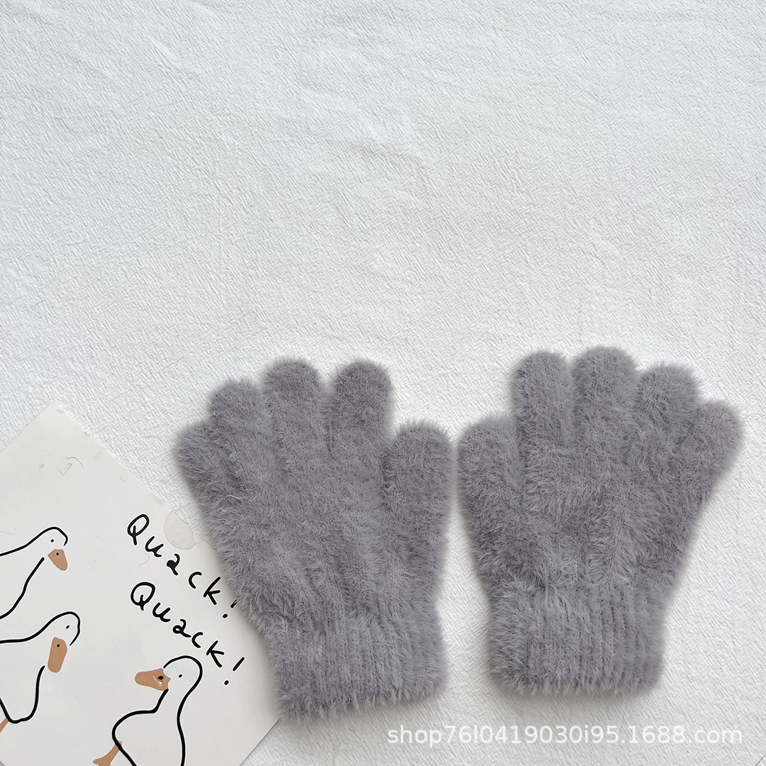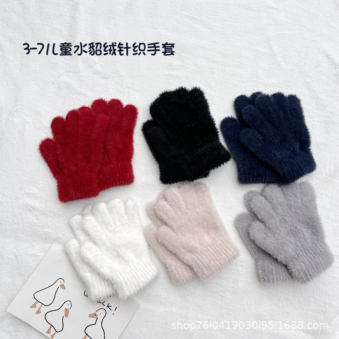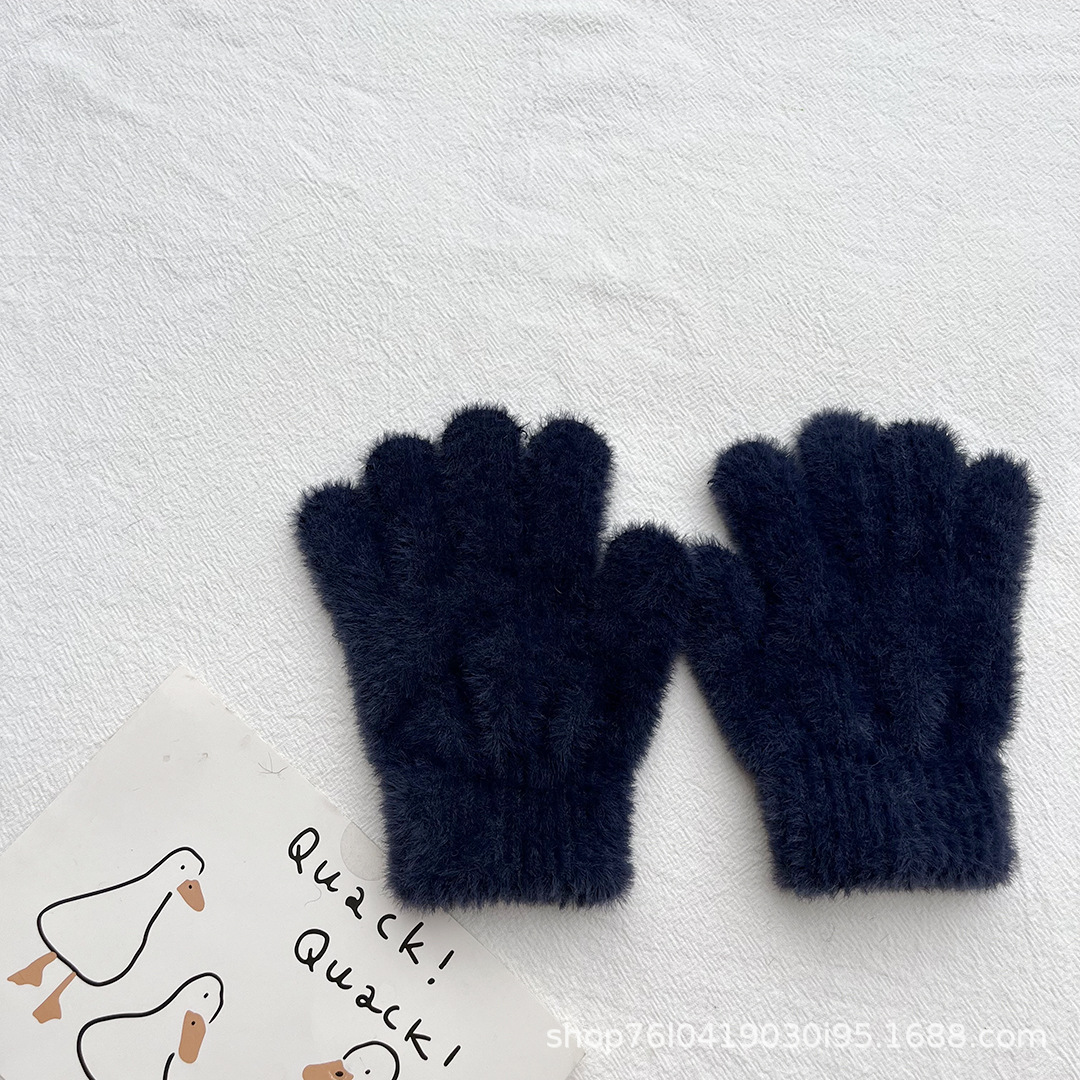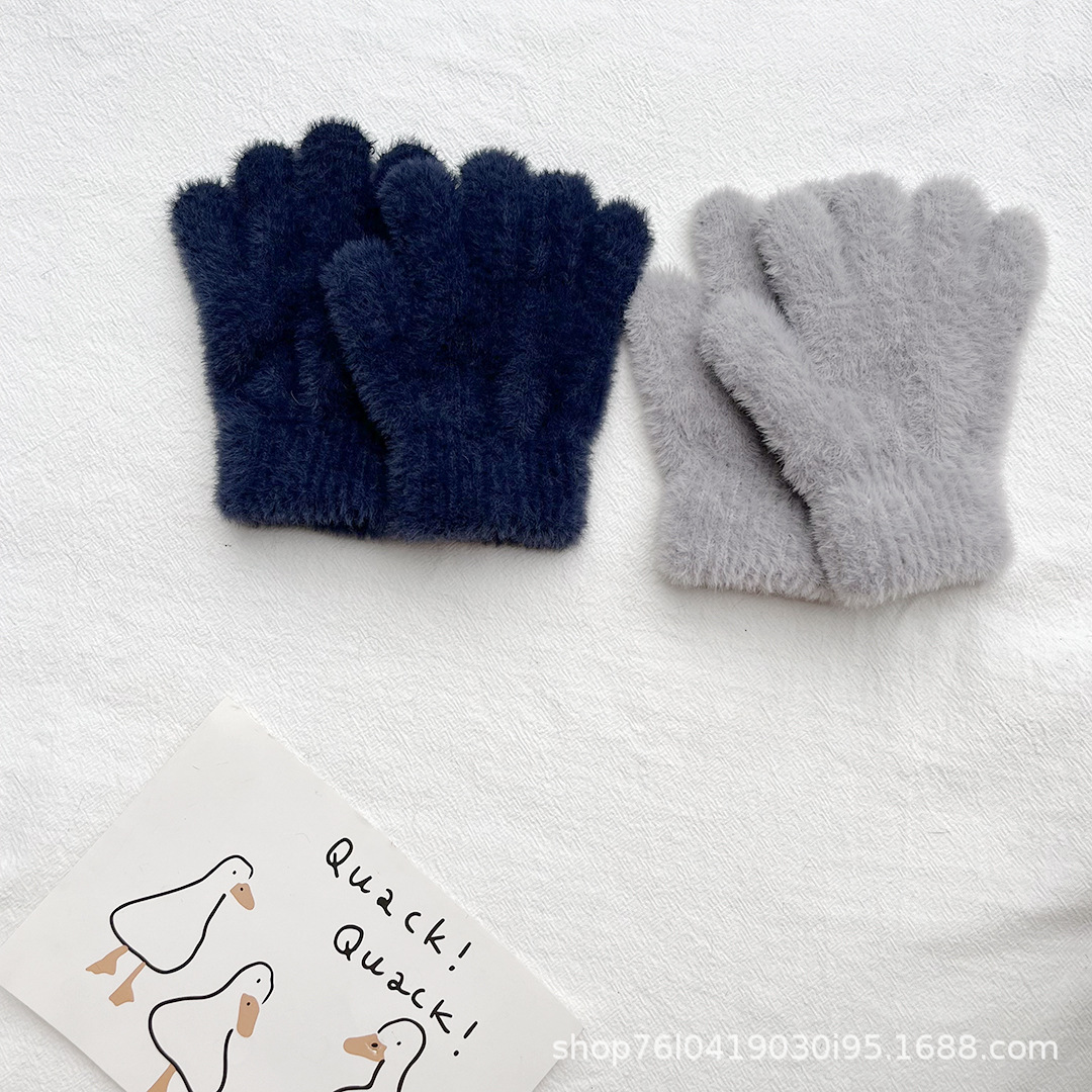 어린이 니트 장갑의 한국어 버전 간단한 단색 밍크 벨벳 소년과 소녀 겨울 따뜻한 다섯 손가락 장갑 도매