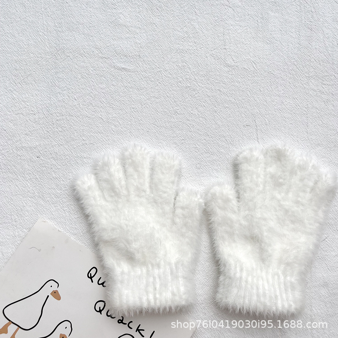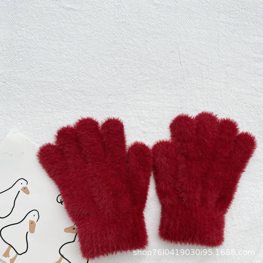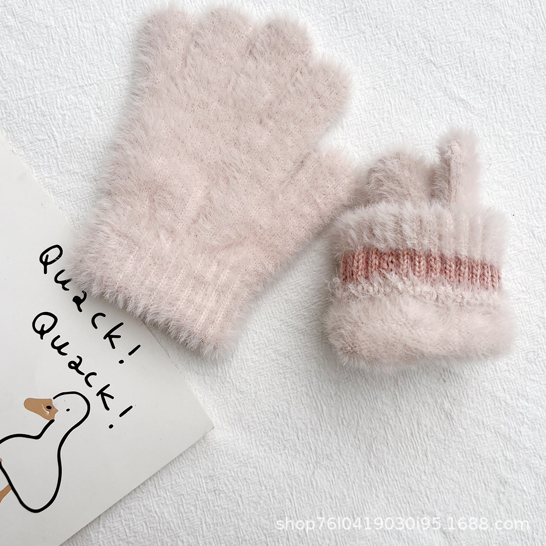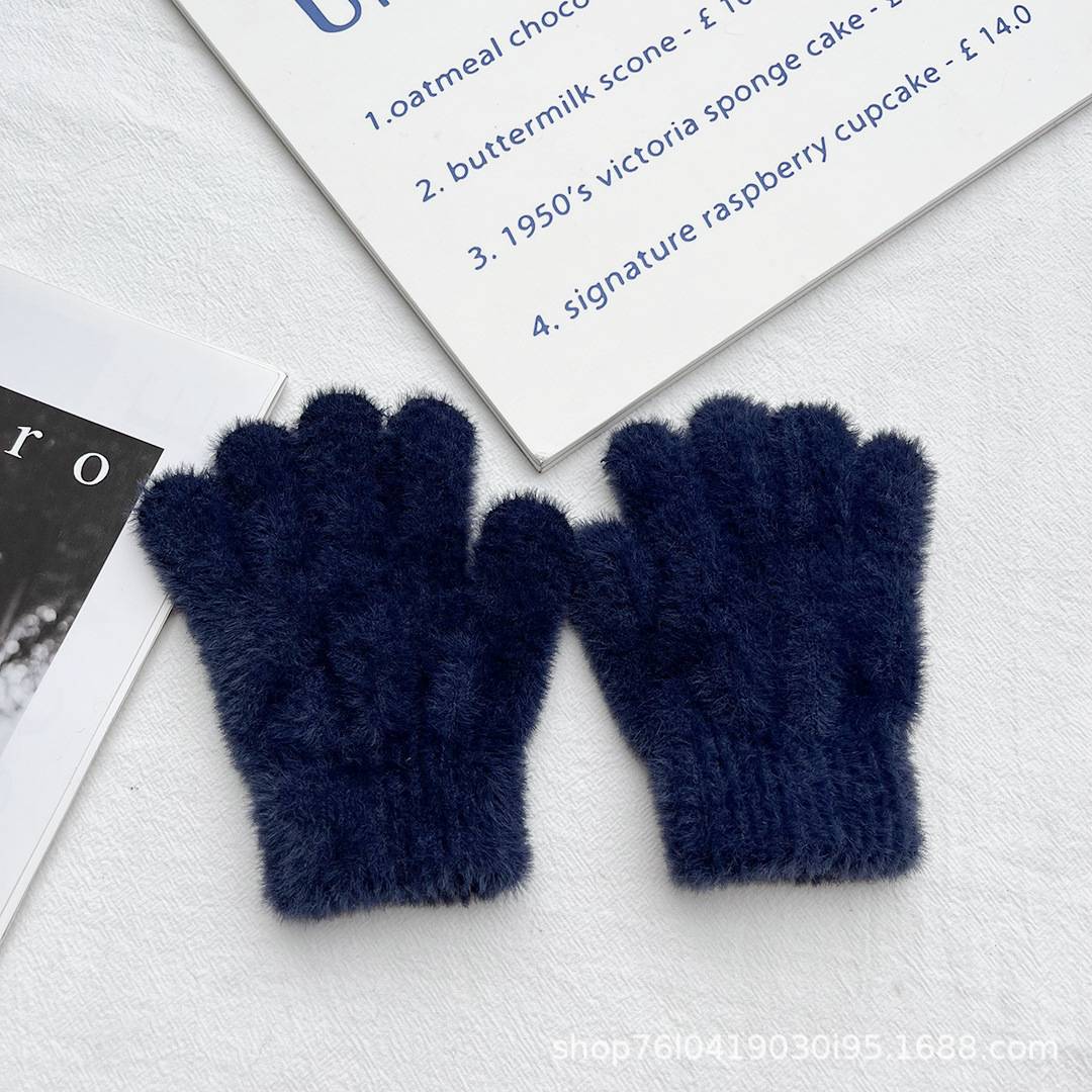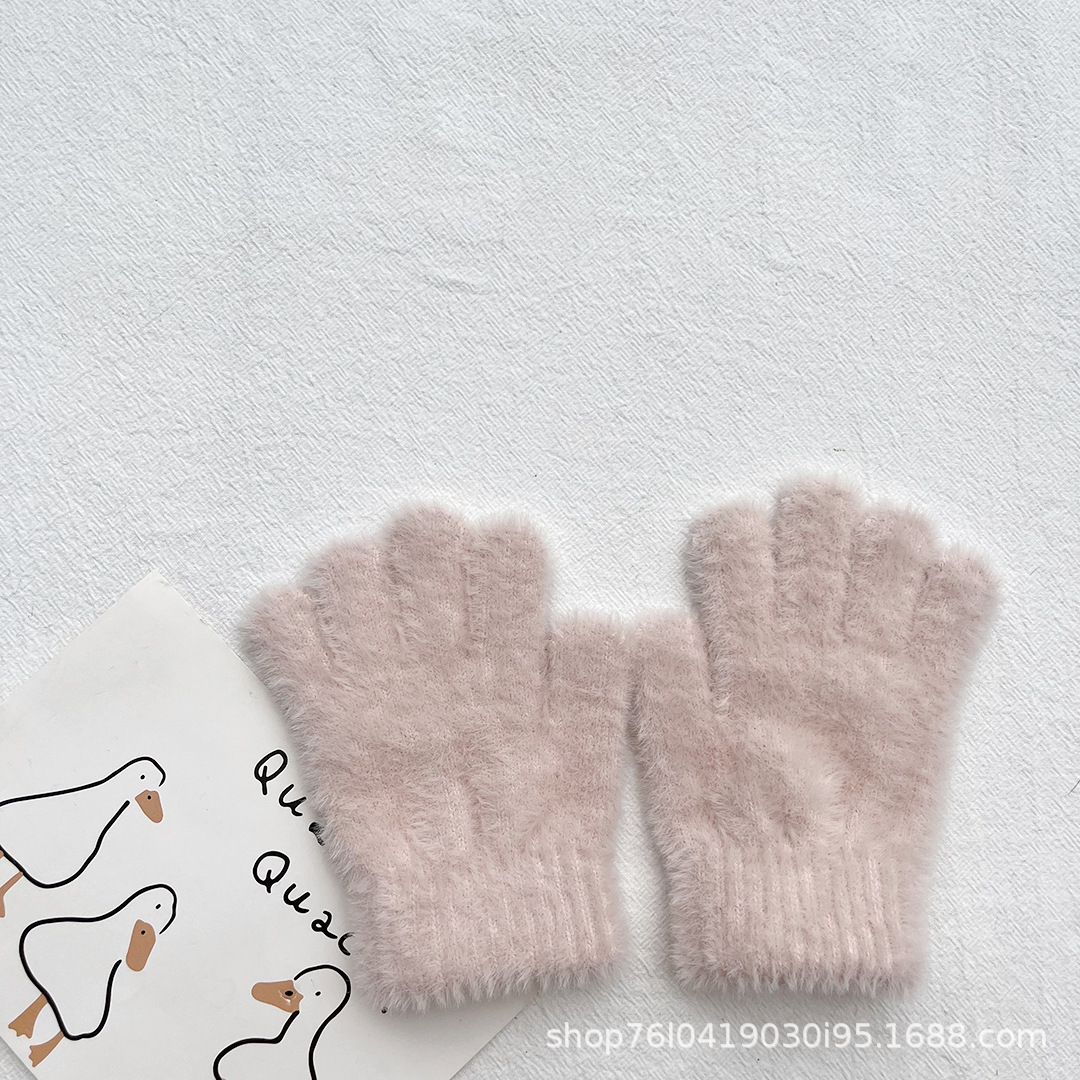 어린이 니트 장갑의 한국어 버전 간단한 단색 밍크 벨벳 소년과 소녀 겨울 따뜻한 다섯 손가락 장갑 도매