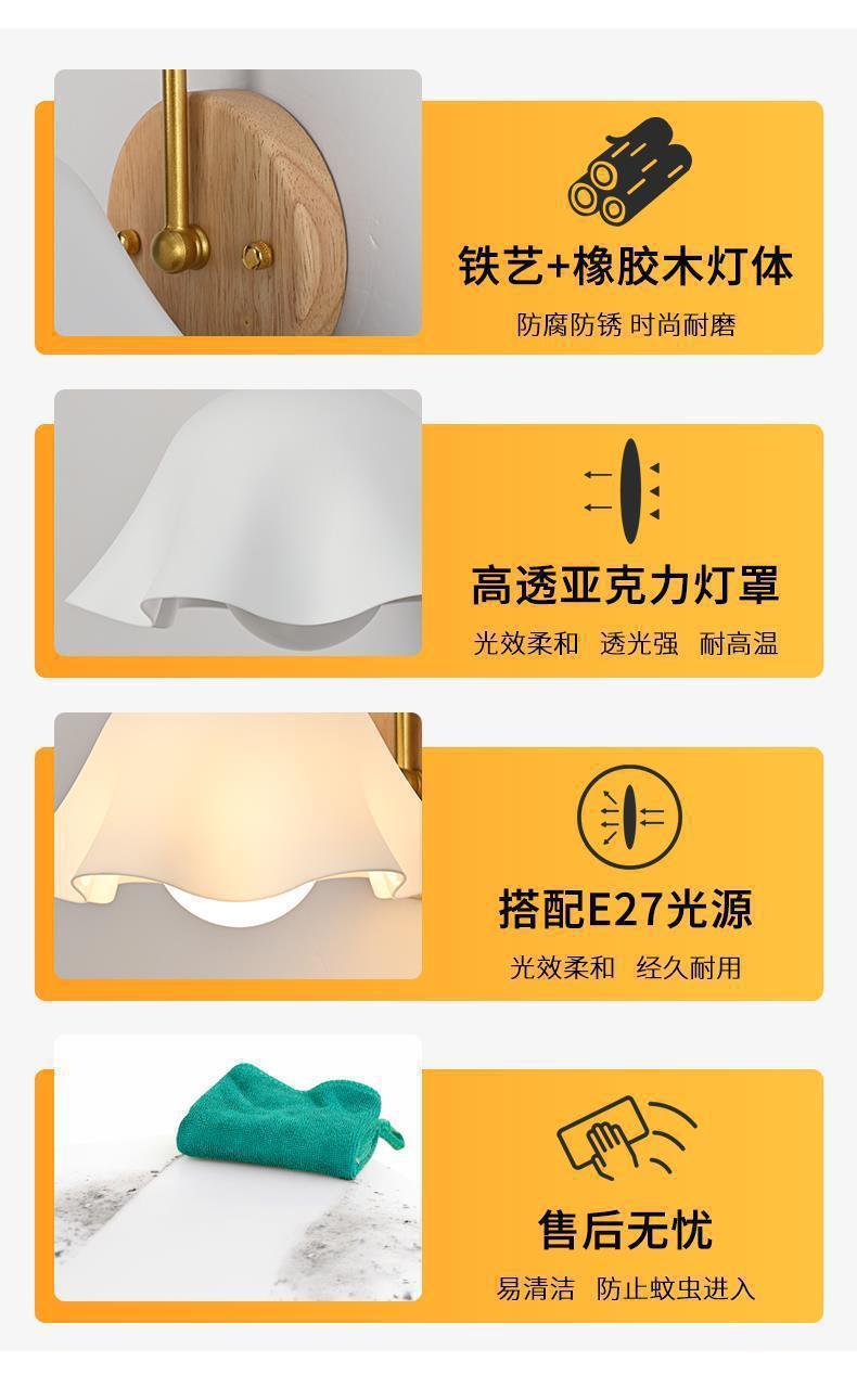 북유럽 벽 램프 일본 침실 침대 옆 벽 램프 로그 연구 통로 배경 벽 복고풍 인터넷 연예인 조용한 바람 램프