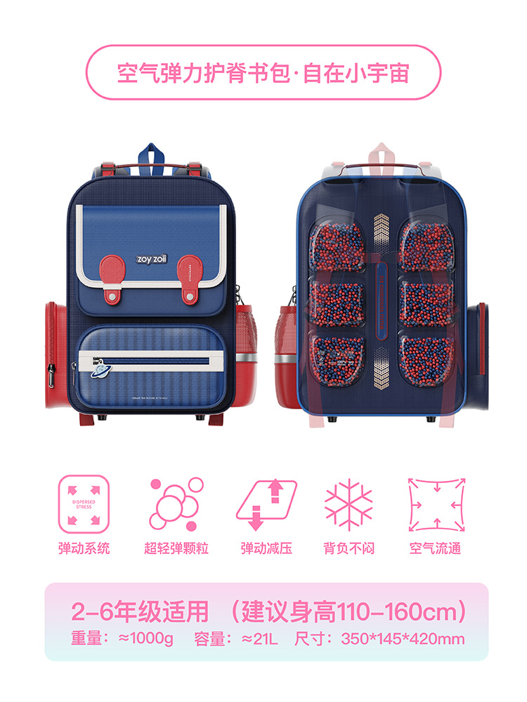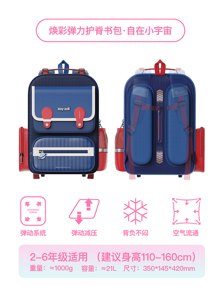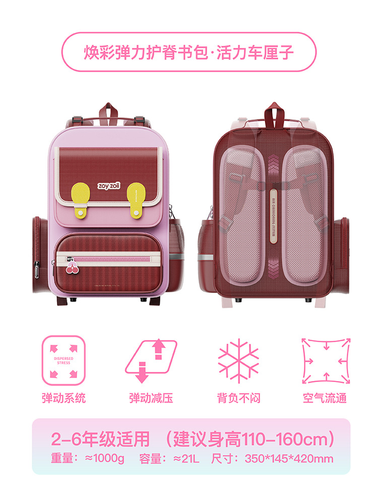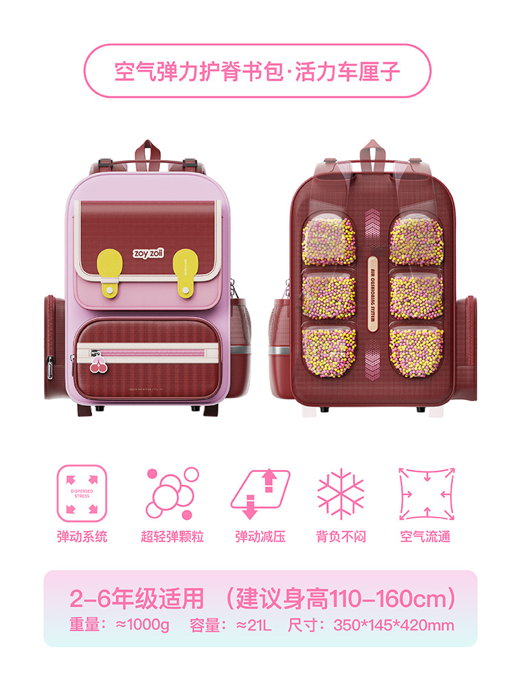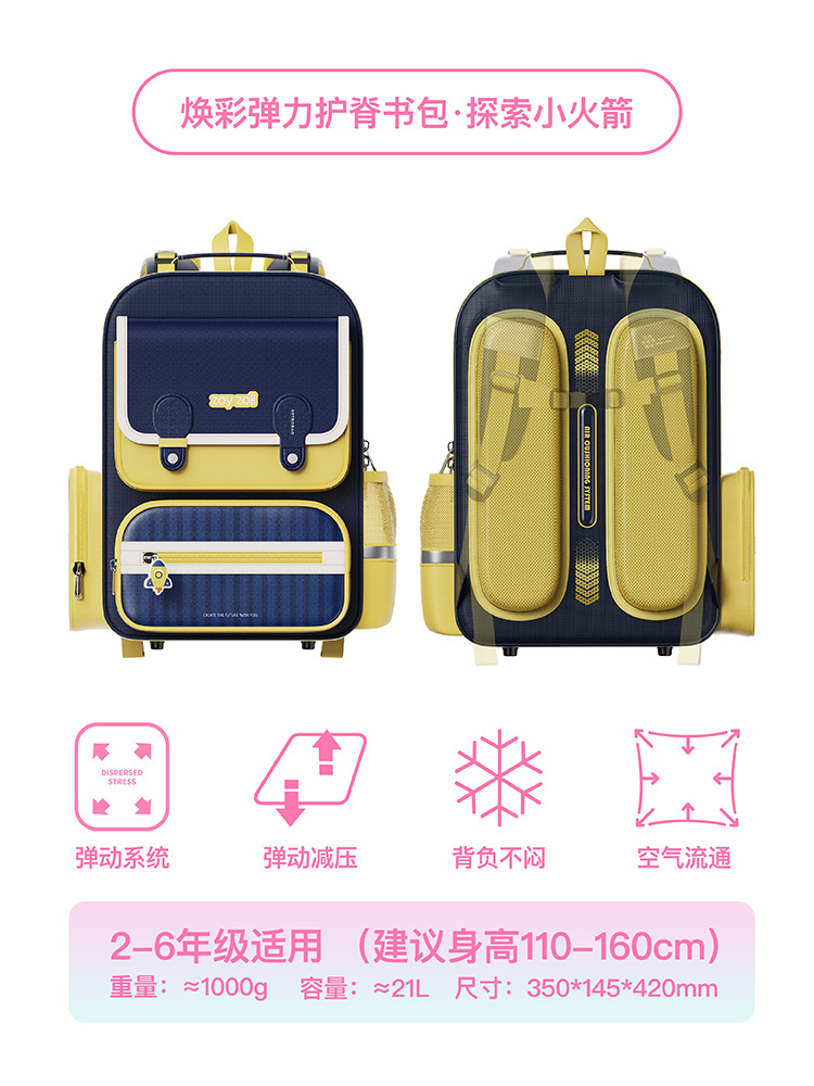 Zoyzoii Zhuo Yi 에어백 능선 보호 책가방 초등 학생 1 ~ 6 학년 어린이 배낭 소년과 소녀의 부담을 줄이기 위해 B88스토어 가기