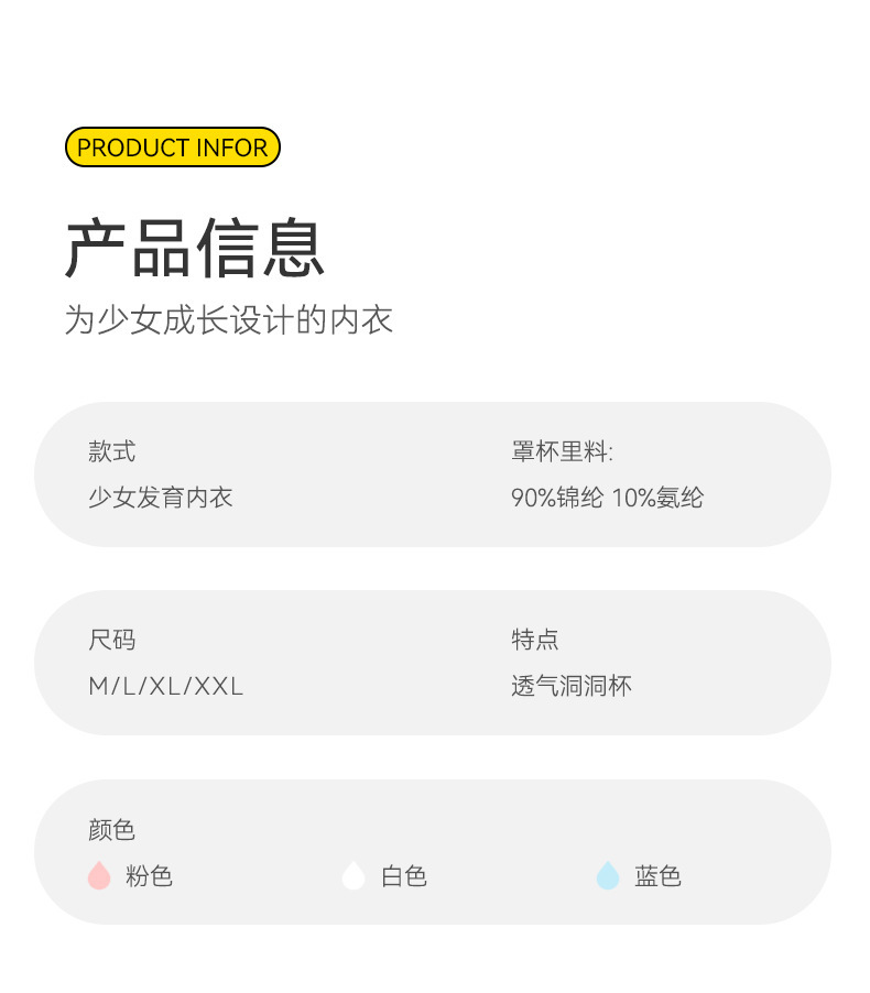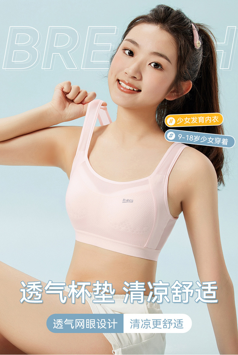 Anfeiya 중학교 여아 속옷 개발 여아 조끼 편안하고 시원하고 부드러운 피부 친화적 인 통기성 홀 컵 스포츠 유형