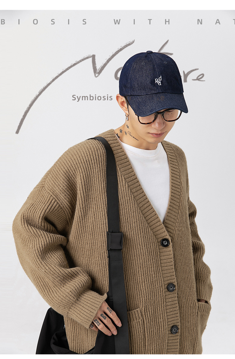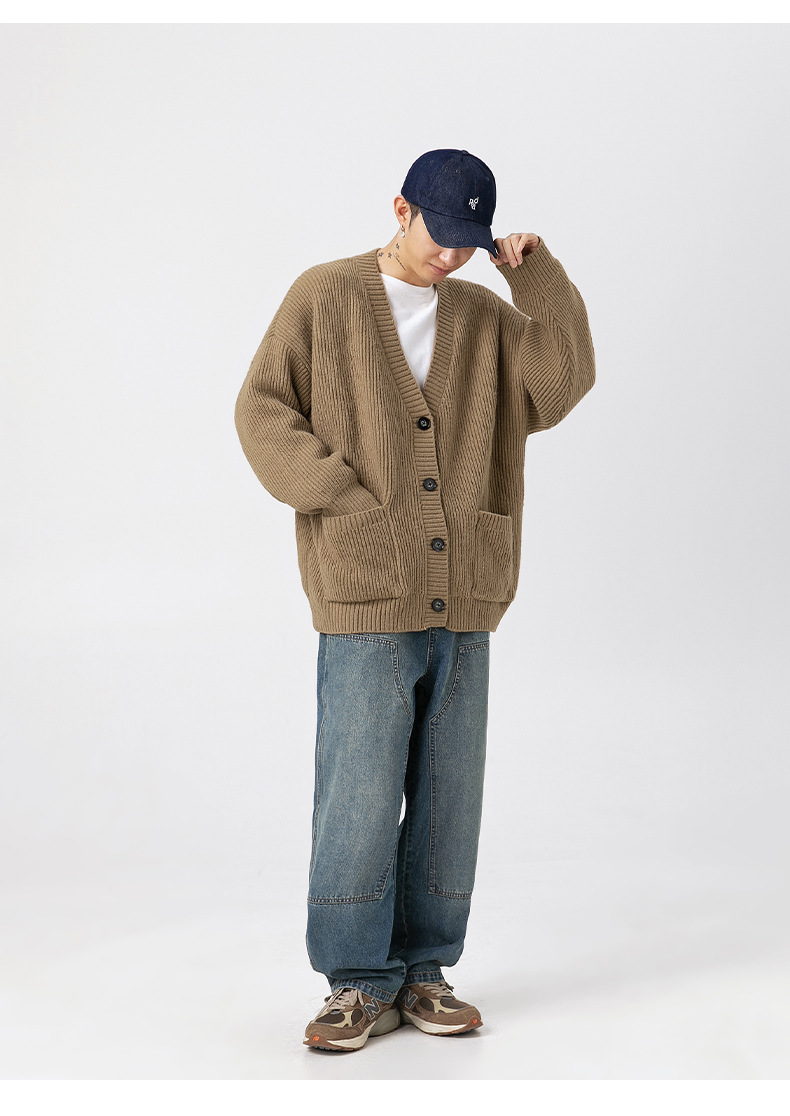 두꺼운 바늘 무거운 질감 가디건 스웨터 남자의 가을과 겨울 새로운 일본 커플의 모든 매치 심플 솔리드 컬러 니트 스웨터 재킷스토어 가기