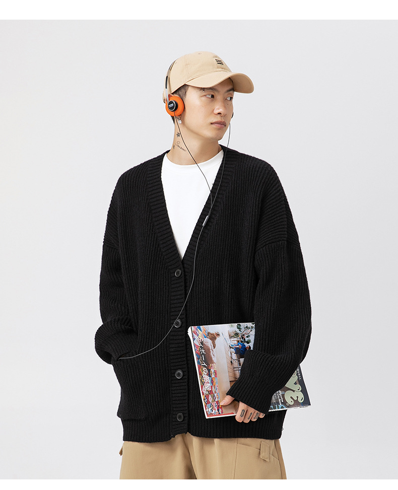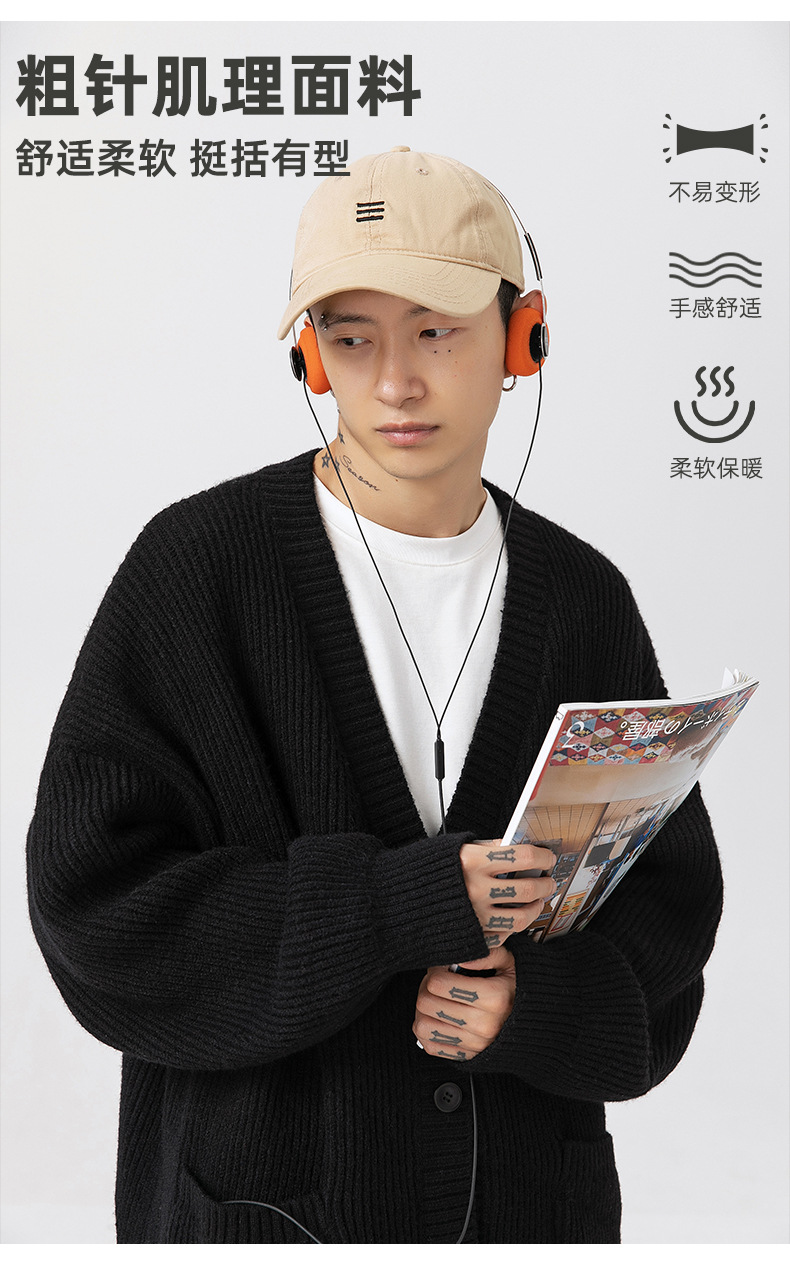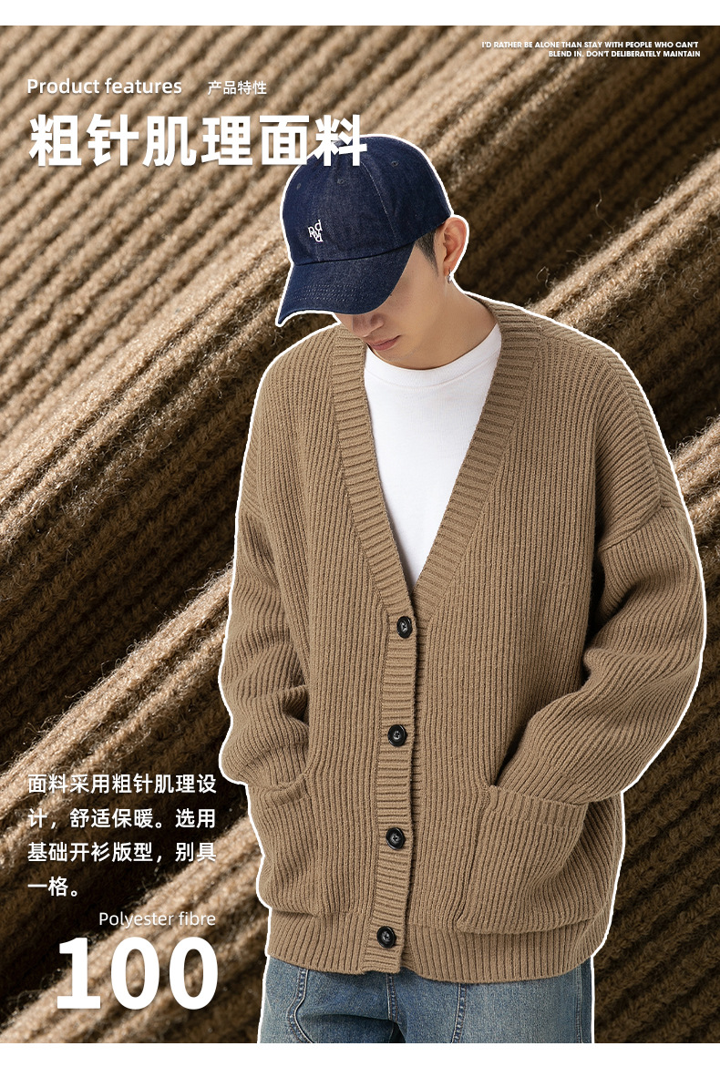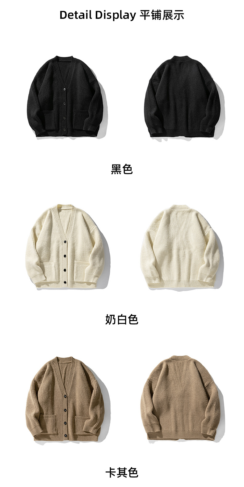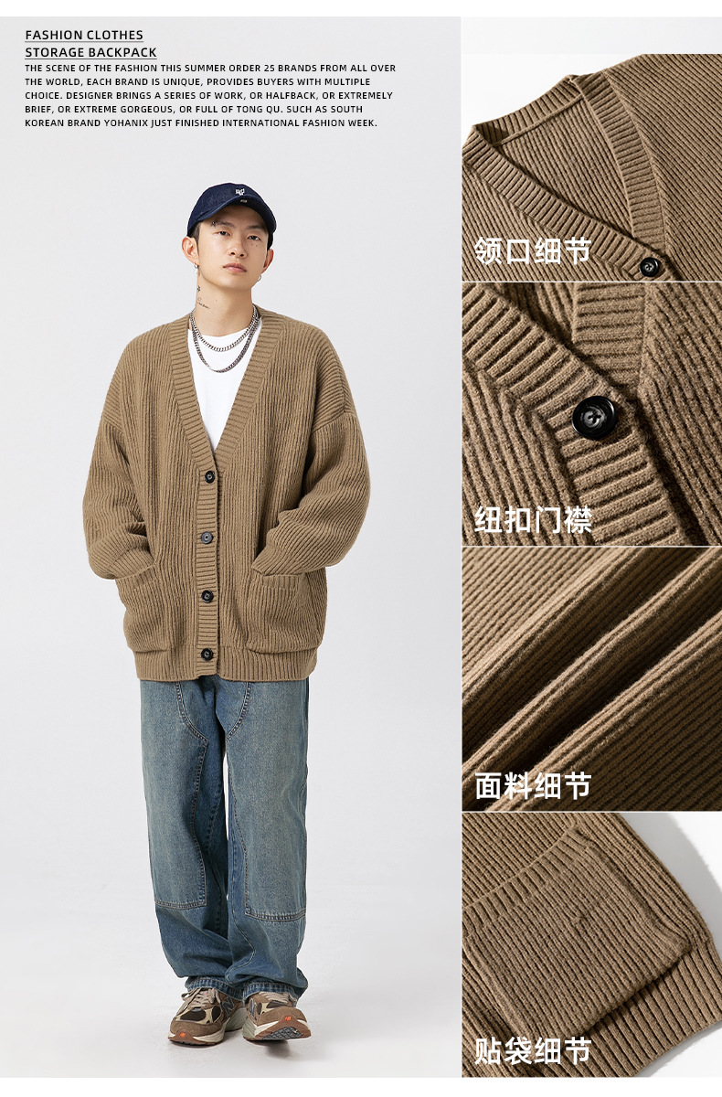 두꺼운 바늘 무거운 질감 가디건 스웨터 남자의 가을과 겨울 새로운 일본 커플의 모든 매치 심플 솔리드 컬러 니트 스웨터 재킷
