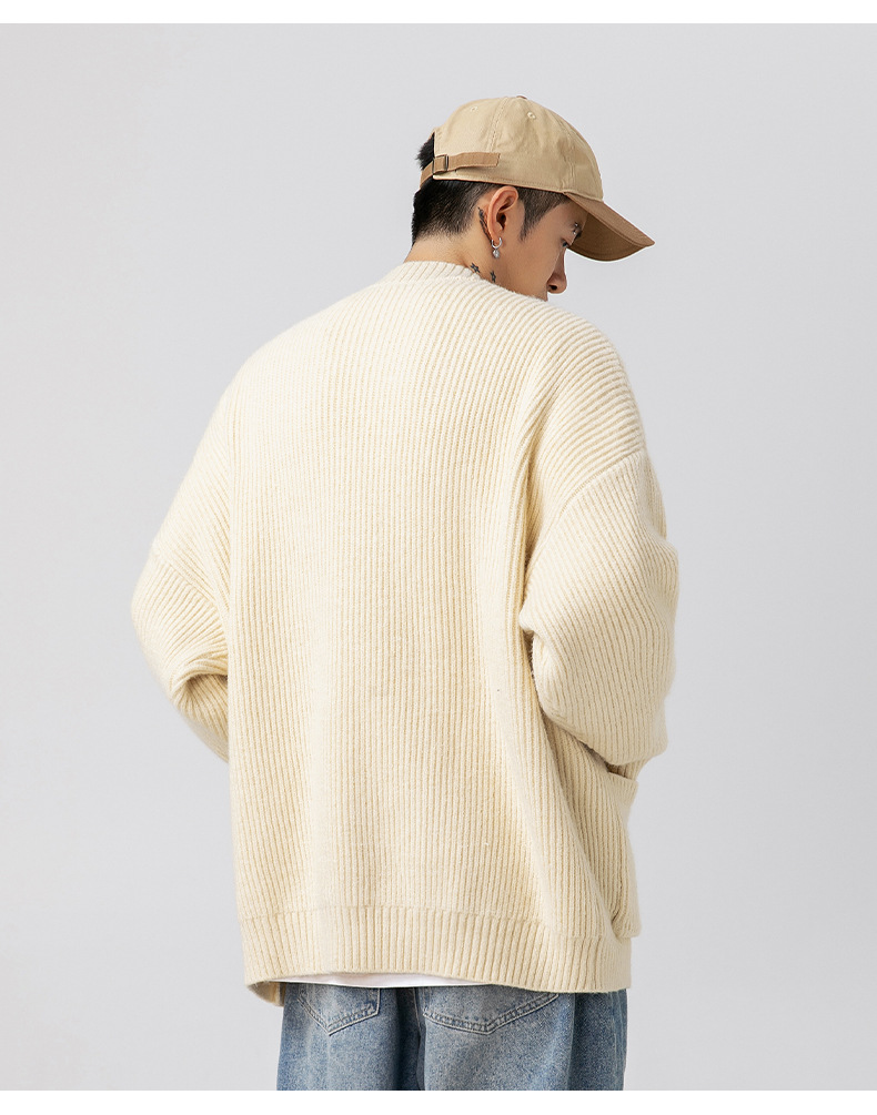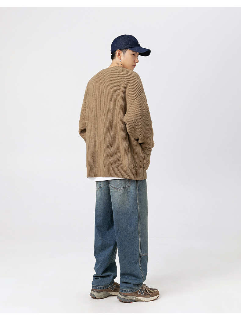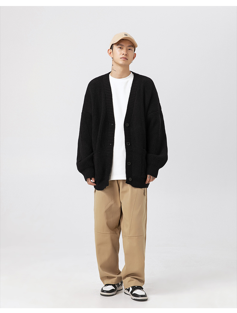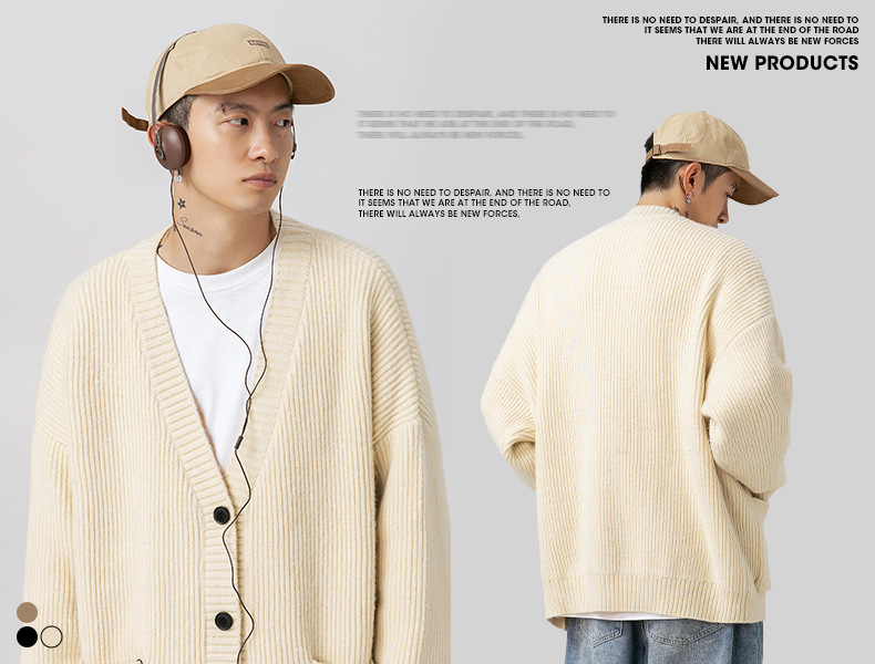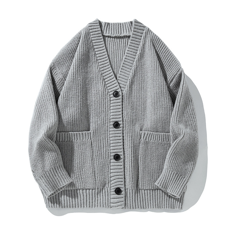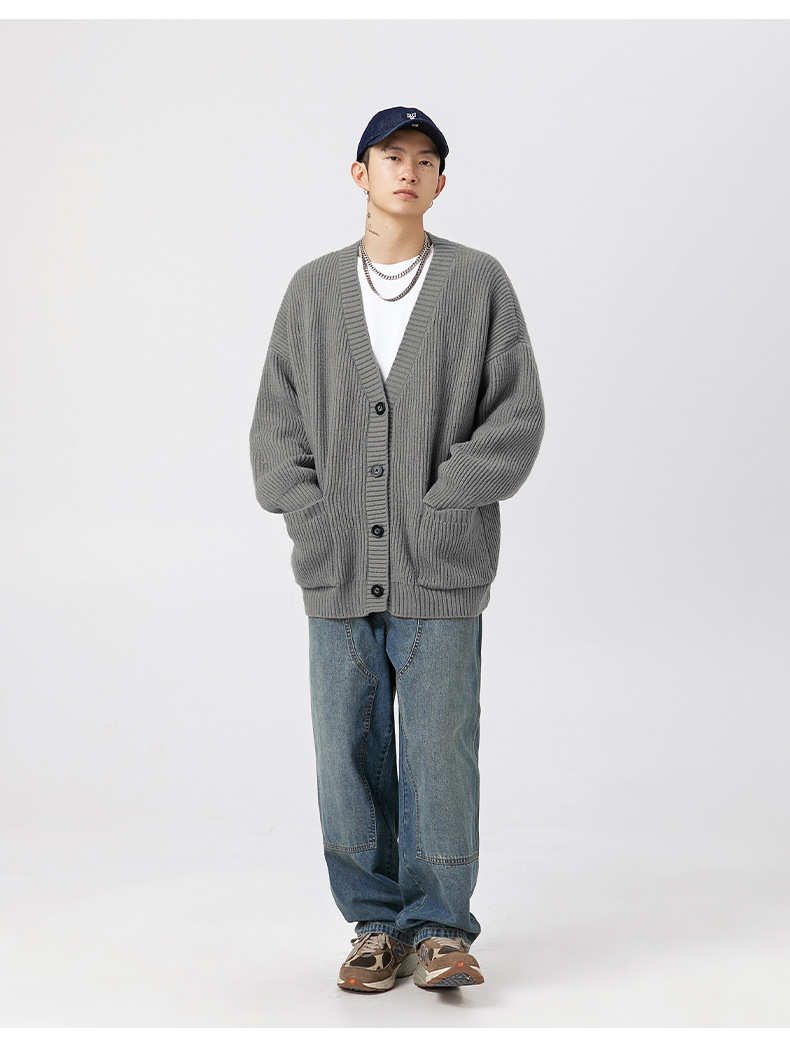 두꺼운 바늘 무거운 질감 가디건 스웨터 남자의 가을과 겨울 새로운 일본 커플의 모든 매치 심플 솔리드 컬러 니트 스웨터 재킷