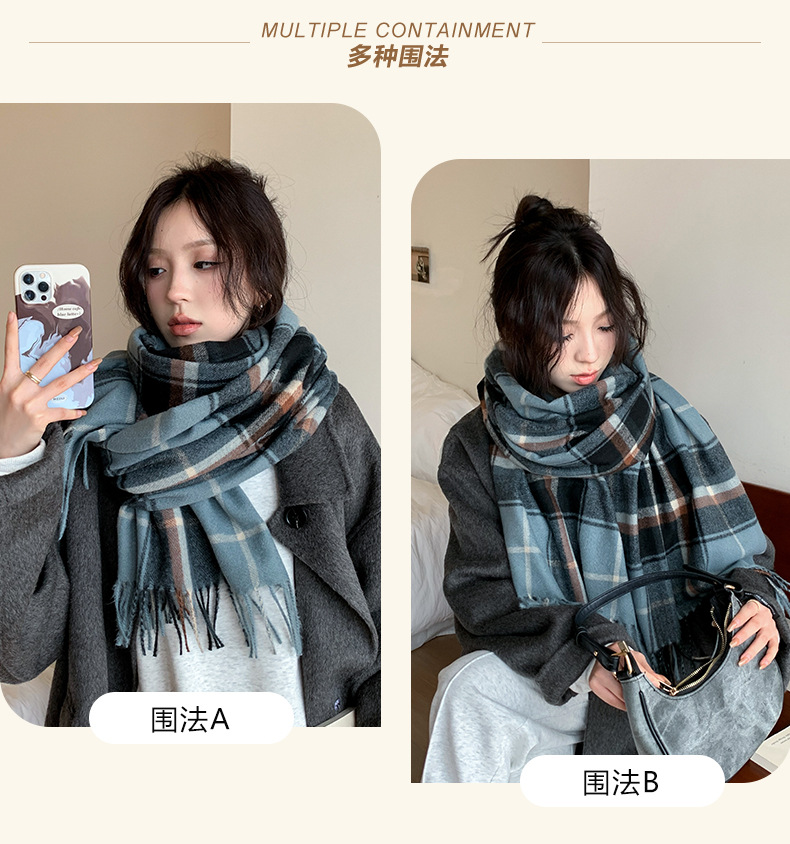 고급 분위기 격자 무늬 스카프 한국 겨울 모든 경기 따뜻한 학생 스카프 새로운 영국 스트리트 스타일 스카프스토어 가기