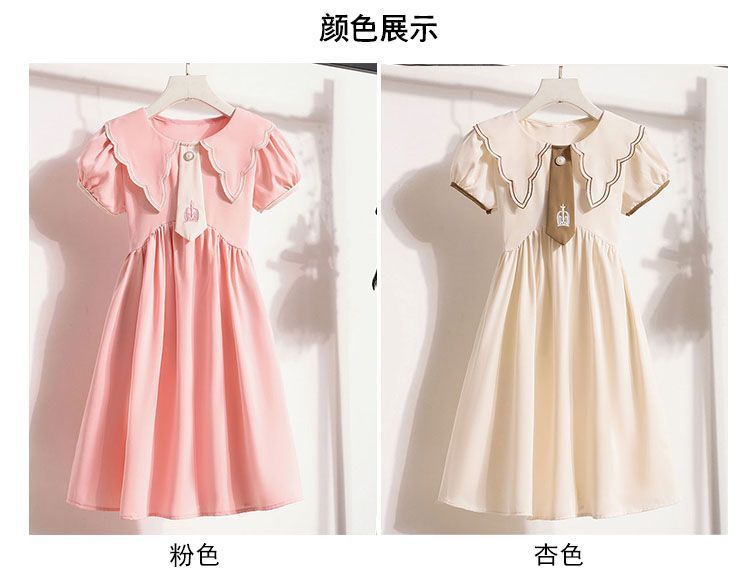 여아 드레스 여름 드레스 2025 새로운 스타일 라펠 스타일 중대형 아동 스커트 아동 여름 드레스 공주 스커트 여름