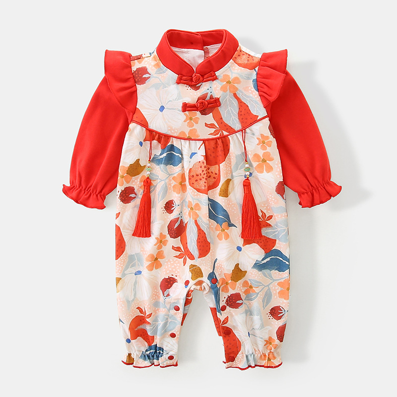 아기 가을 순수 면화 점프 슈트 2025 중국 스타일 축제 아기 소녀 신생아 긴팔 봄, 가을 의류 3238스토어 가기